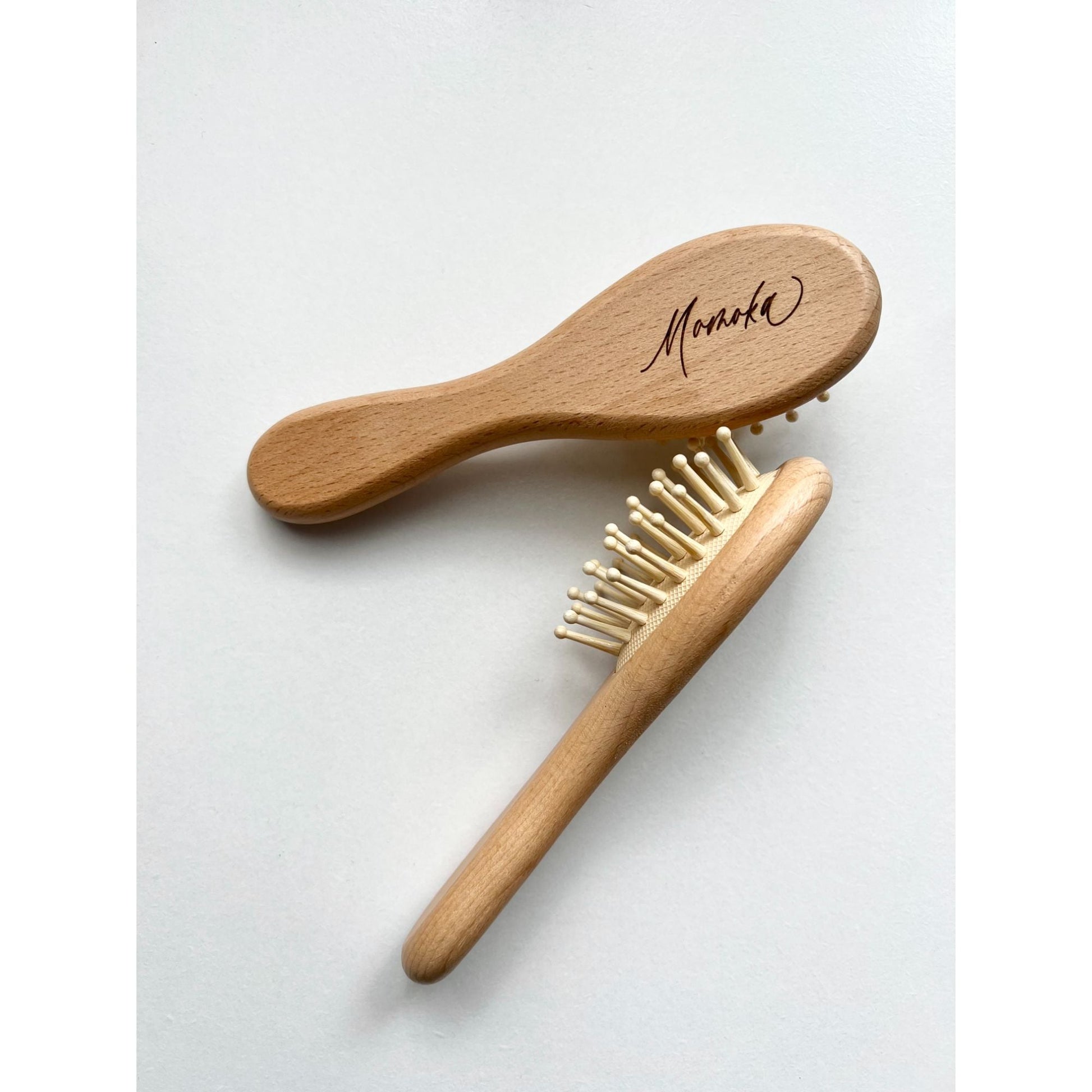 カリグラフィーのお名前が入ったナチュラルな素材の木製ブラシが、ミニサイズになって登場!