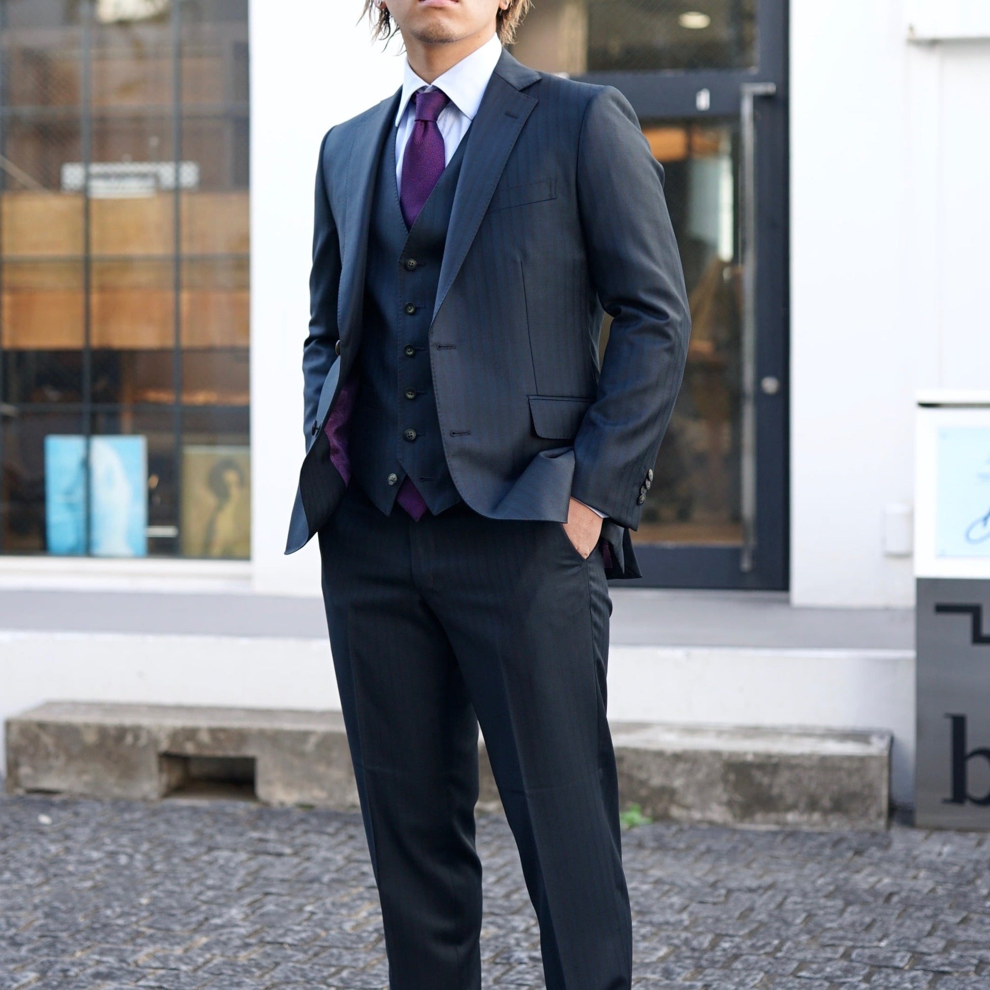 パーティー用のスーツとしてネイビー系でオシャレを楽しみながらはいかがでしょうか?