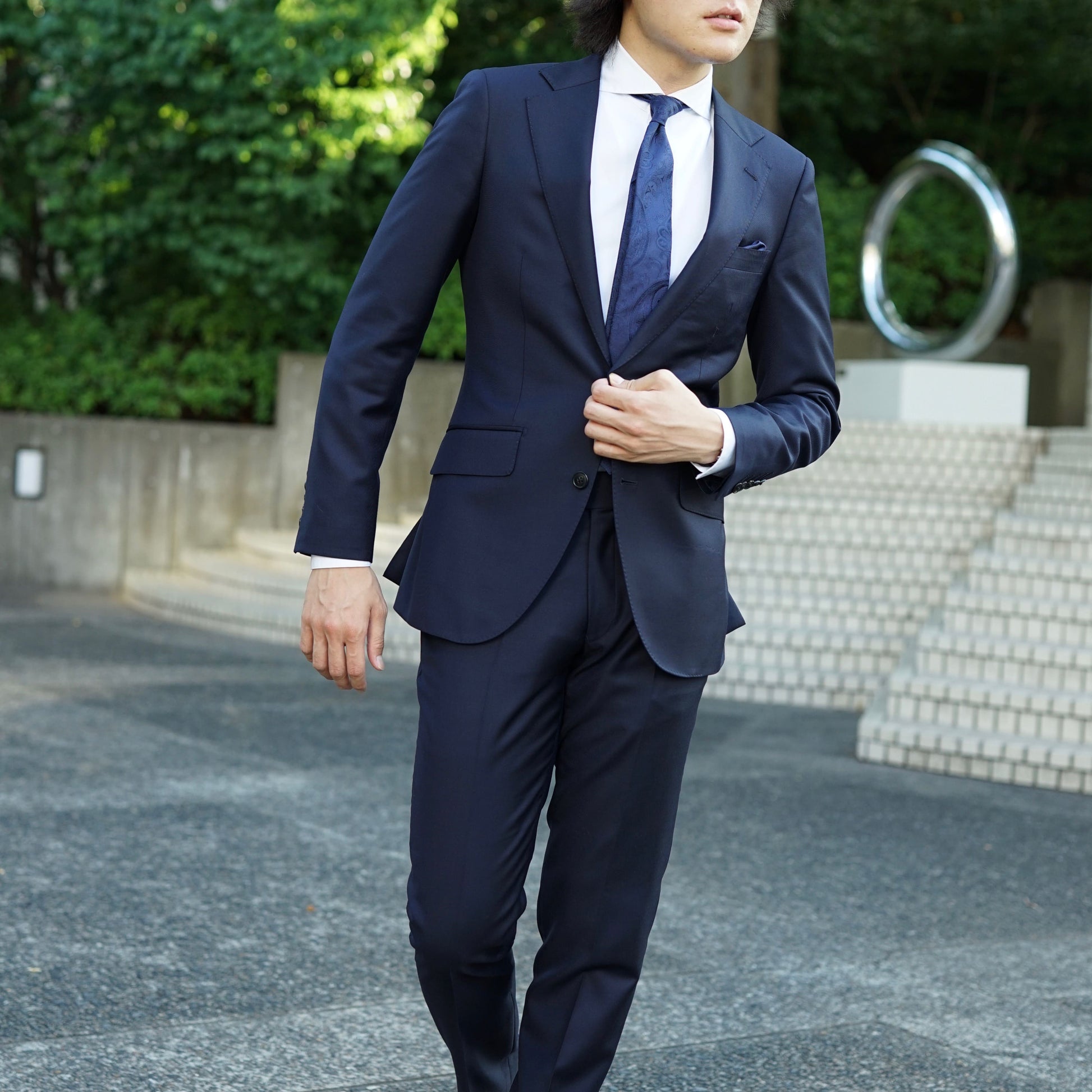 パーティー用 ネイビー系オーダースーツ 国産生地 【結婚式 タキシード オーダーメイド】