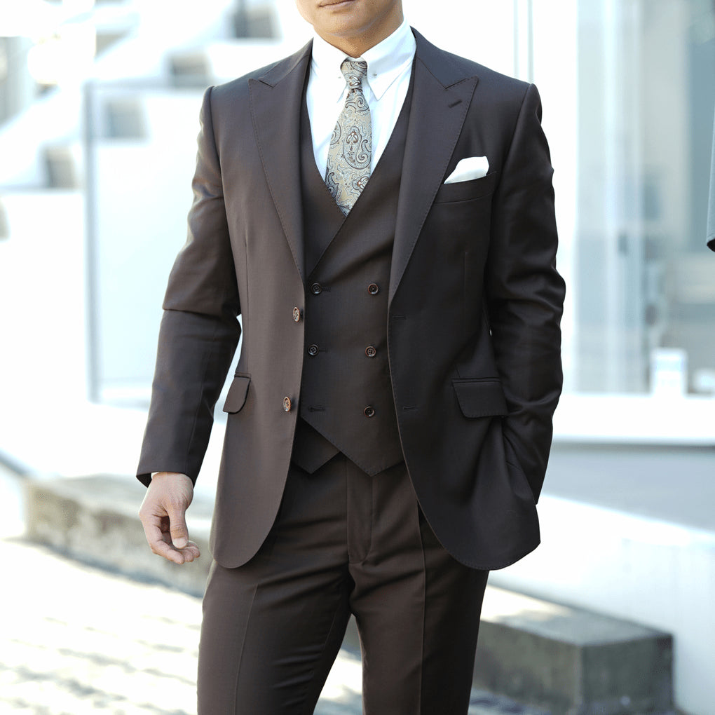 パーティー用のスーツとしてブラウン系でオシャレを楽しみながらはいかがでしょうか?
