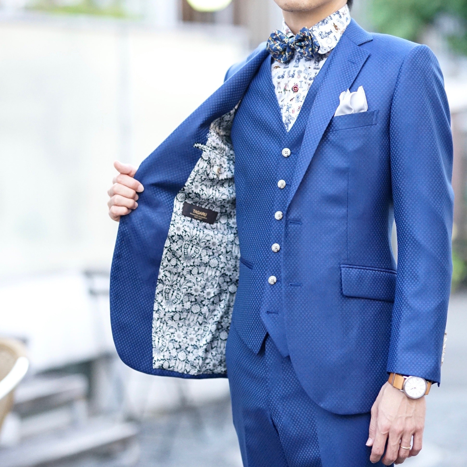 ネイビー系オーダータキシード インポート生地 【結婚式 タキシード オーダーメイド】