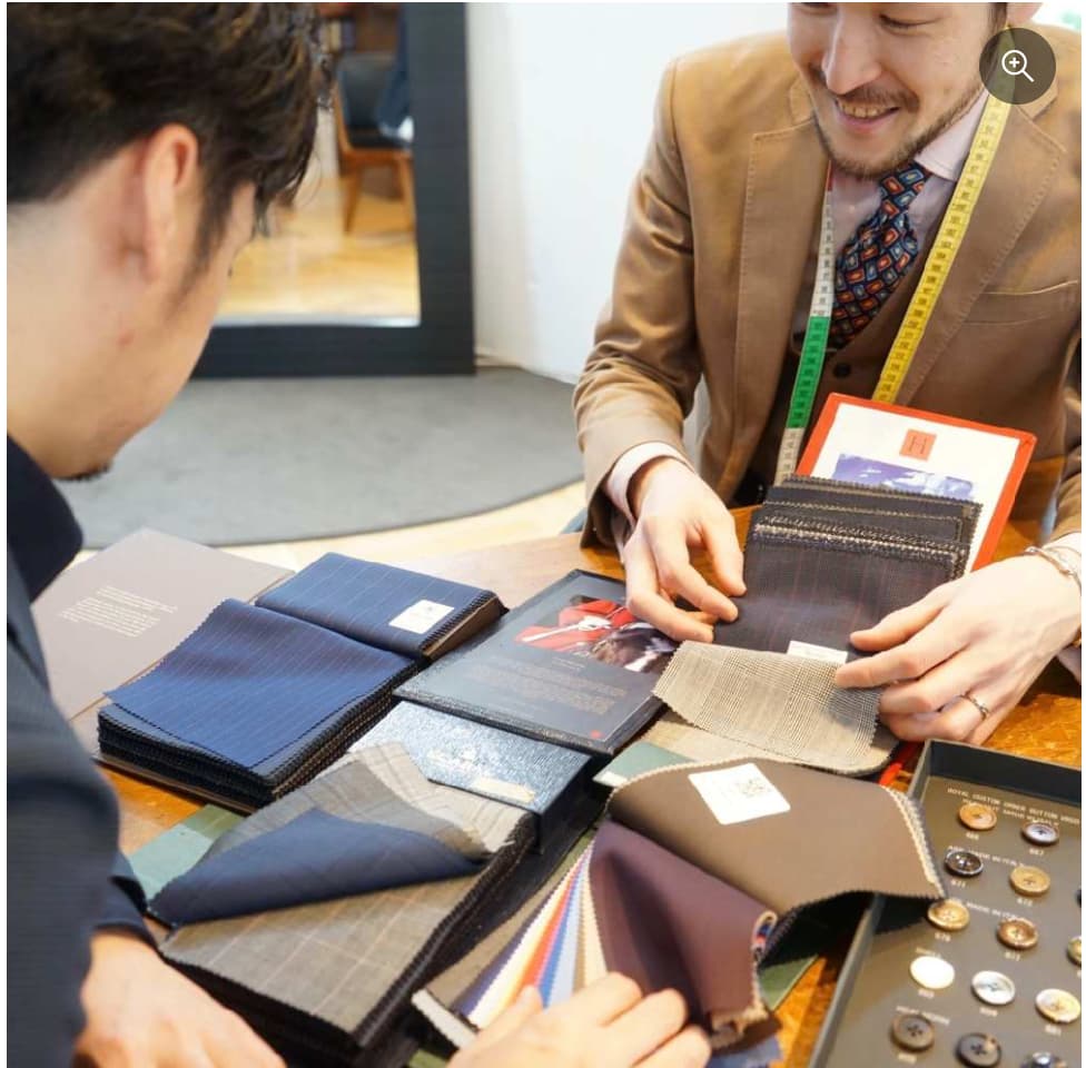 | 素材 | ウール、コットン、リネンなど。 2万種類以上ある生地見本から、お好みの生地をお選びください。 |