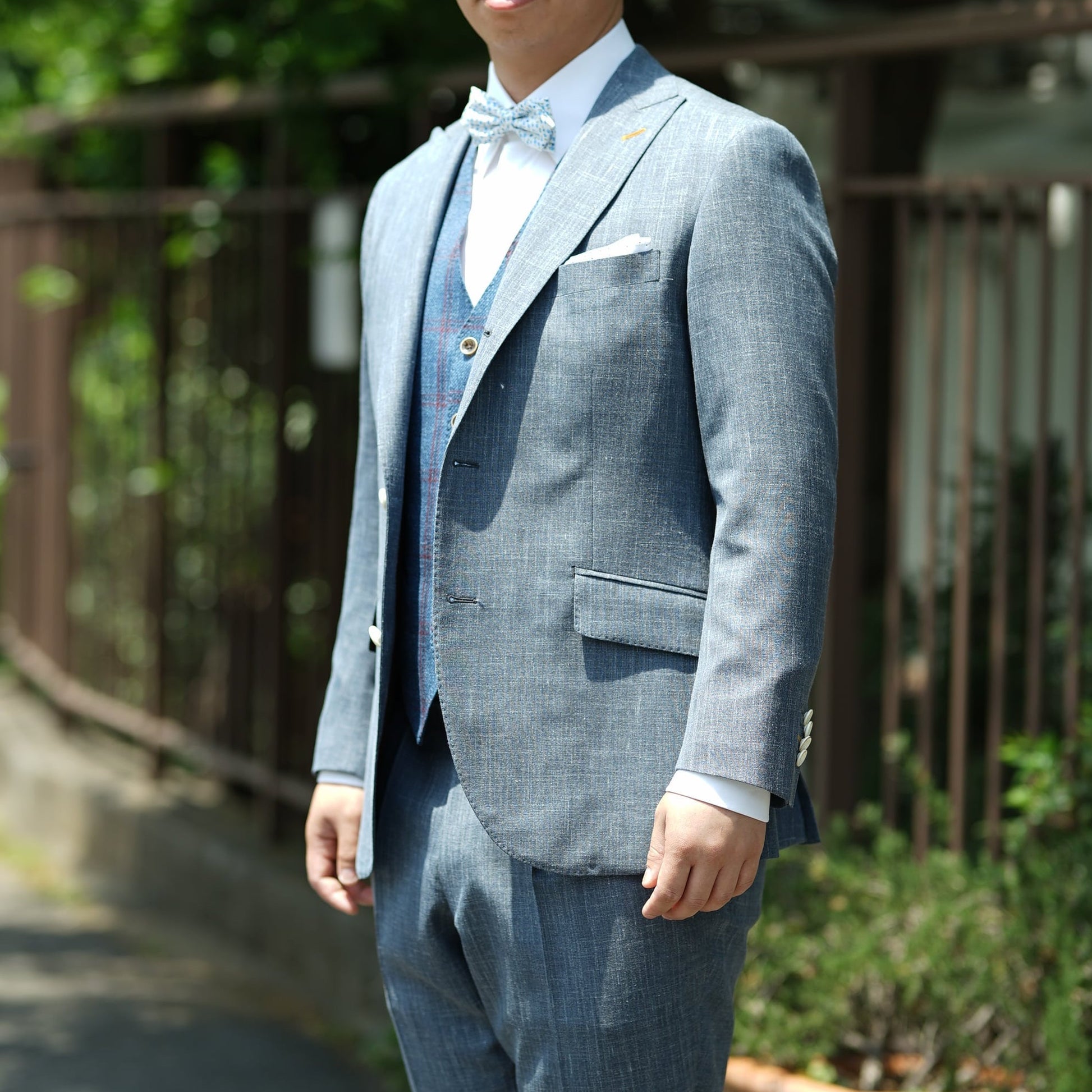 | 商品サイズ寸法 | 店舗にて採寸とフィッティングを行い、お客様お一人お一人に合わせてお仕立ていたします。 |