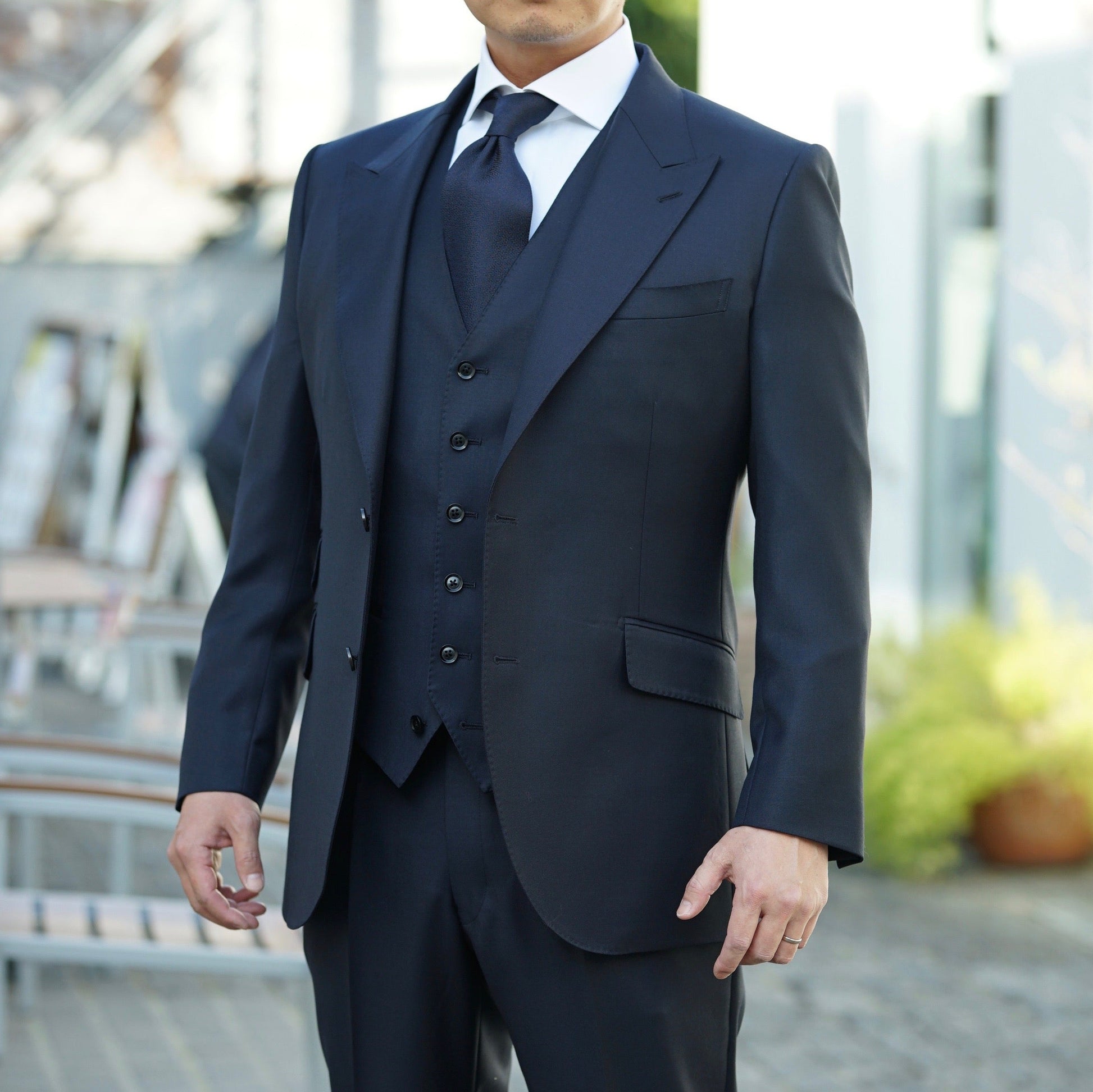 フォーマルスーツは非常にシンプルですが、サイズをぴったり合わせてお仕立てするととても美しく見えるため、写真撮影の機会も多い結婚式にはオーダーがオススメです。