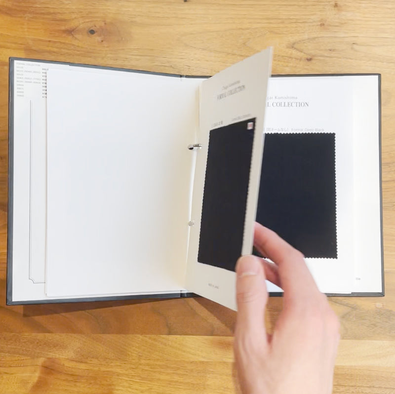 生地は基本的にフォーマル専用の見本帳から選択いただきますが、お好みでその他2万種以上の生地から選択も可能です。