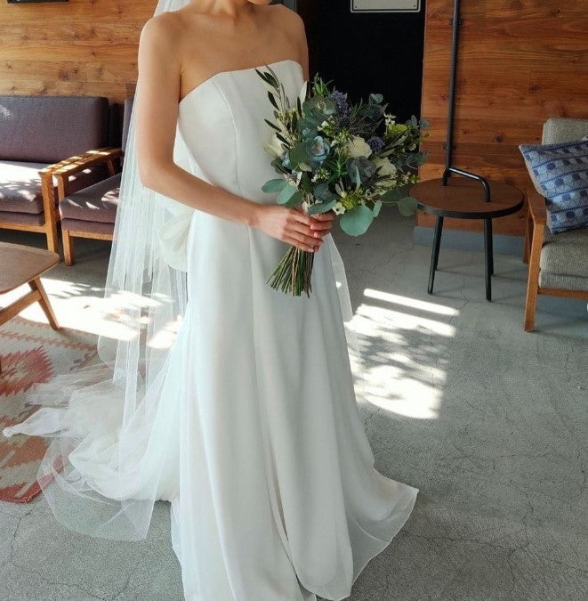 アレンジトレーンのスレンダーAラインドレス 【ウェディングドレス】