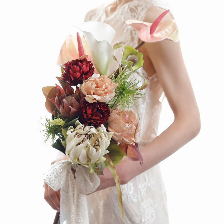 アンスリウム、プロテアなど使用したクラッチブーケです。