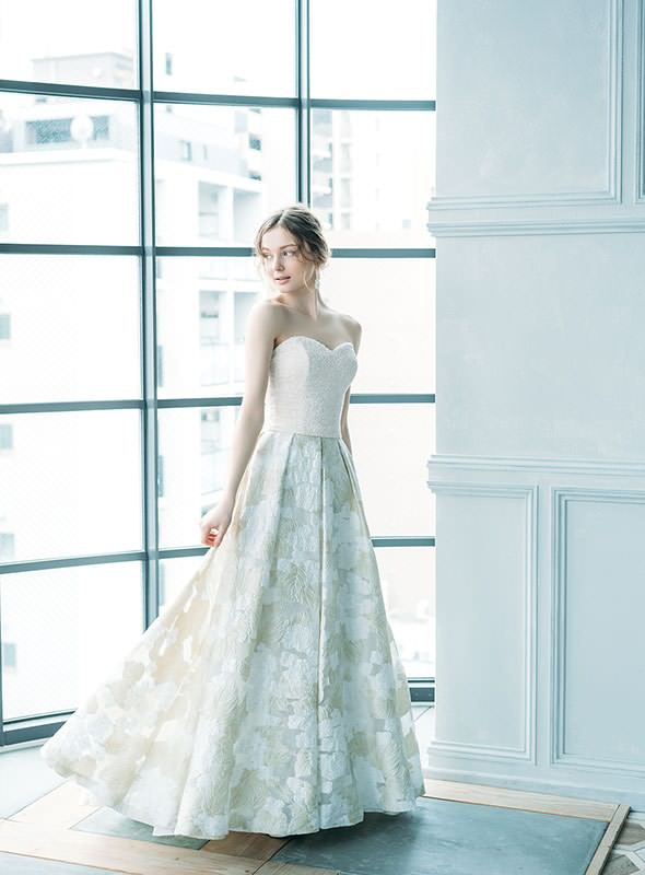 上品なオパール地を纏うセンセーショナルなセパレートドレス