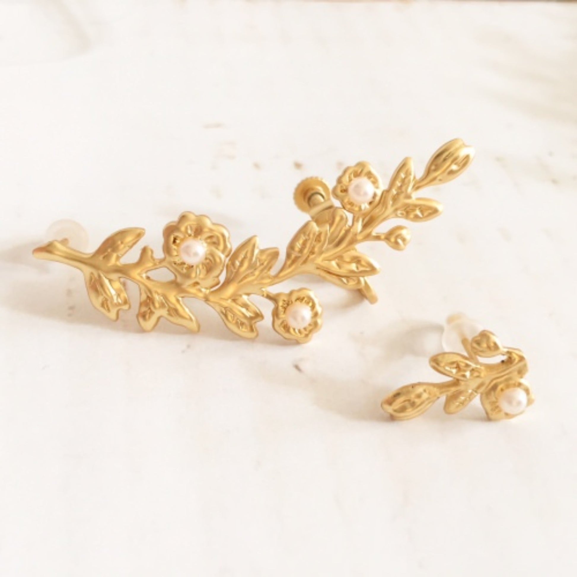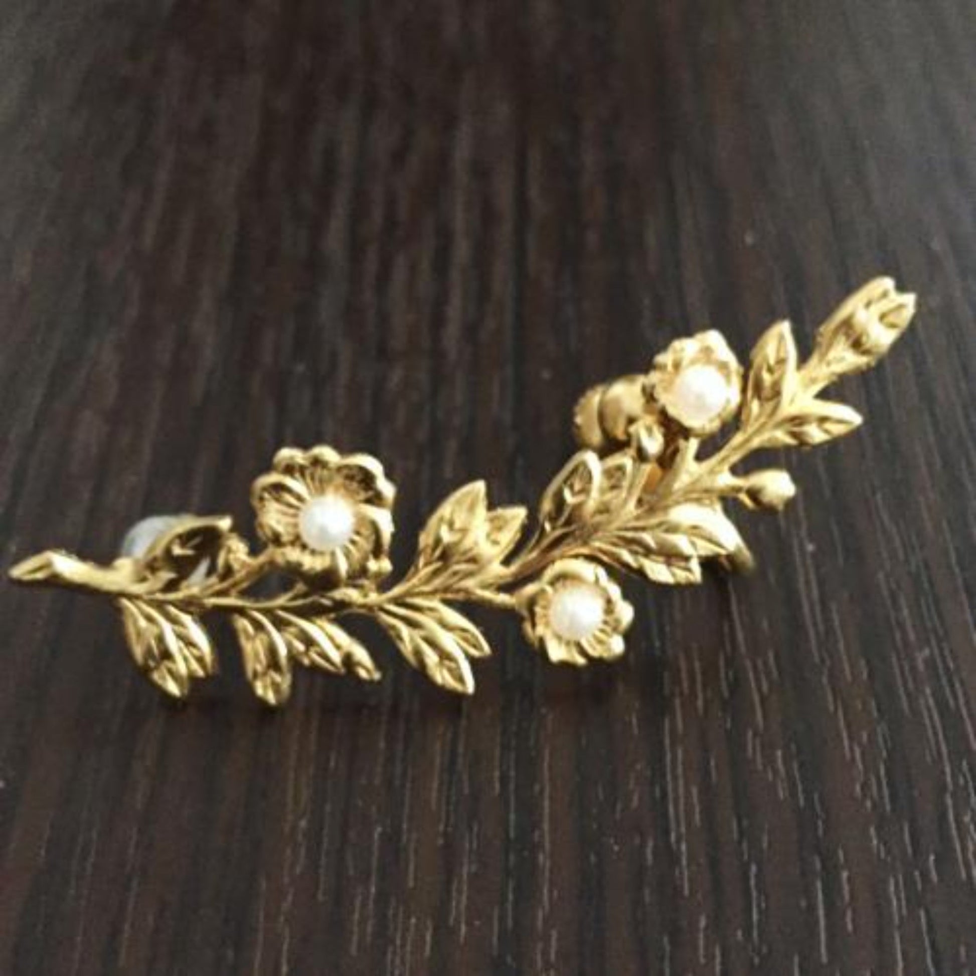 繊細な植物に小さなお花が咲いたようなデザインのイヤーカフです。