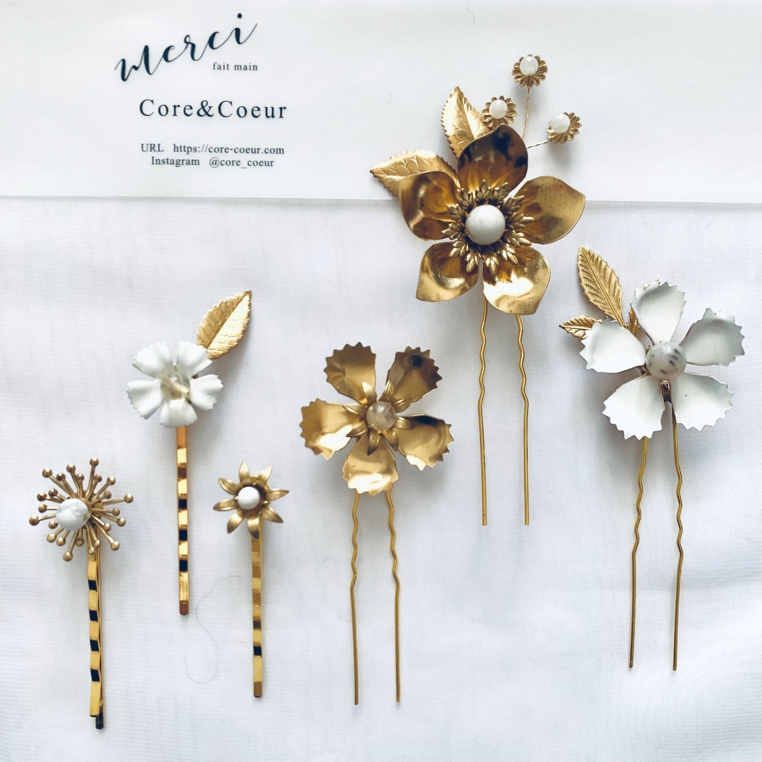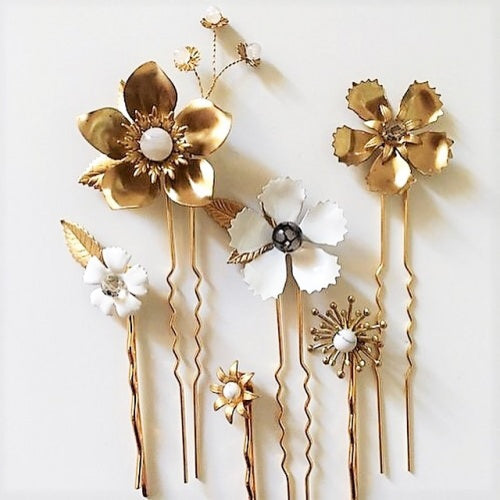 6本がセットになっているので、まとめて1箇所につけたり散りばめてアレンジしたり、ヘアスタイルに合わせてコーディネートををお楽しみいただけます。