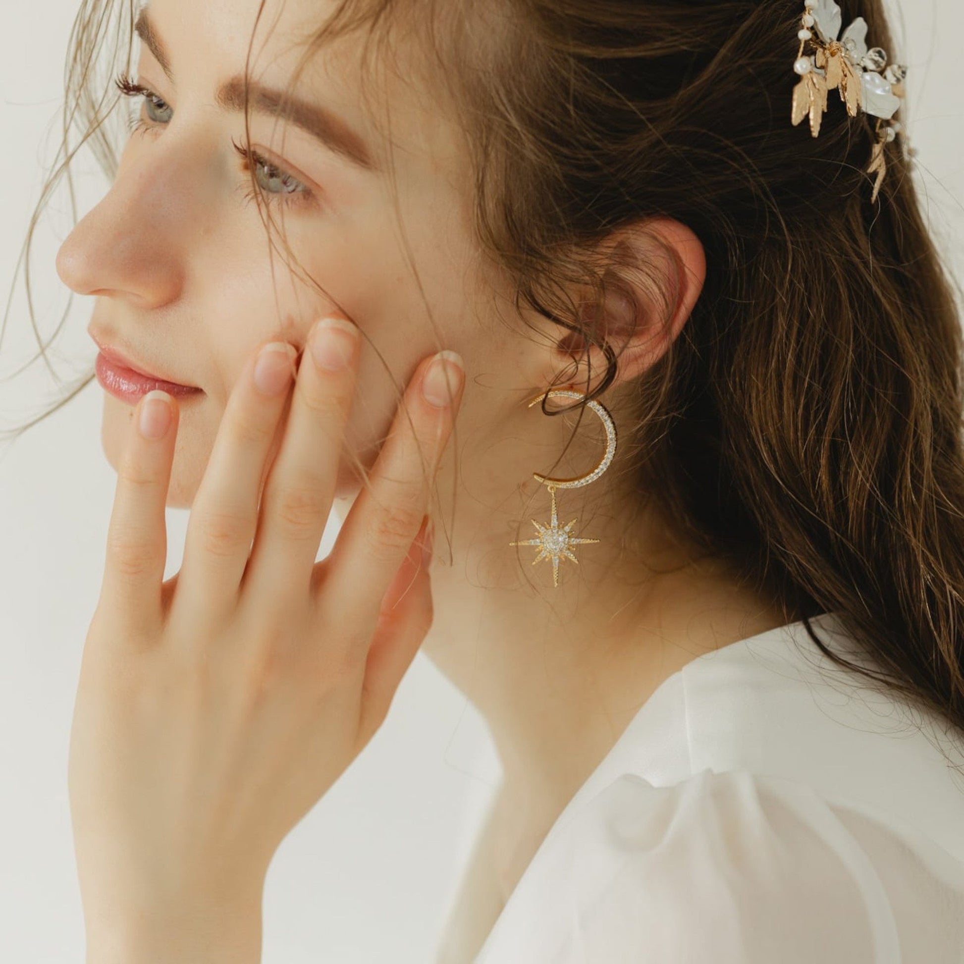 【ピアス】ブライダル ビジュー ムーン スター ゴールド v14【結婚式 ピアス イヤリング】