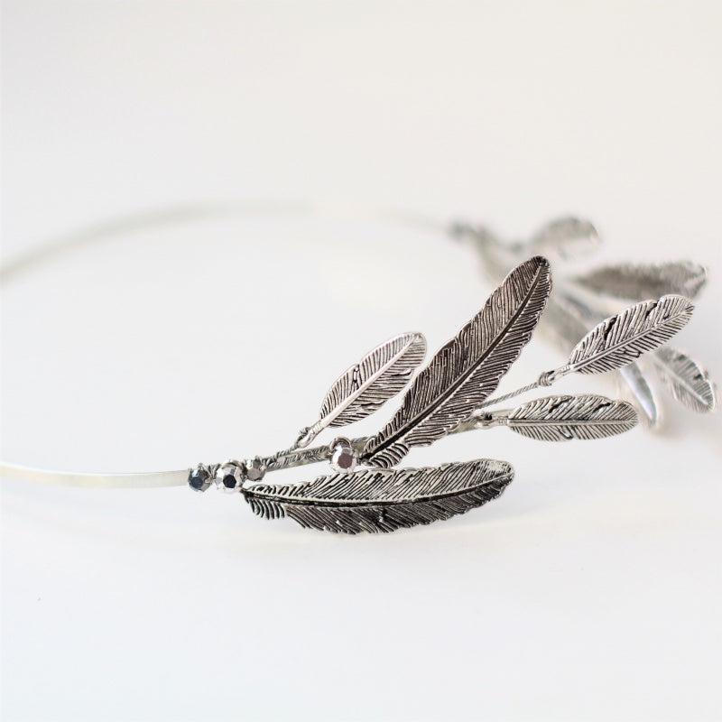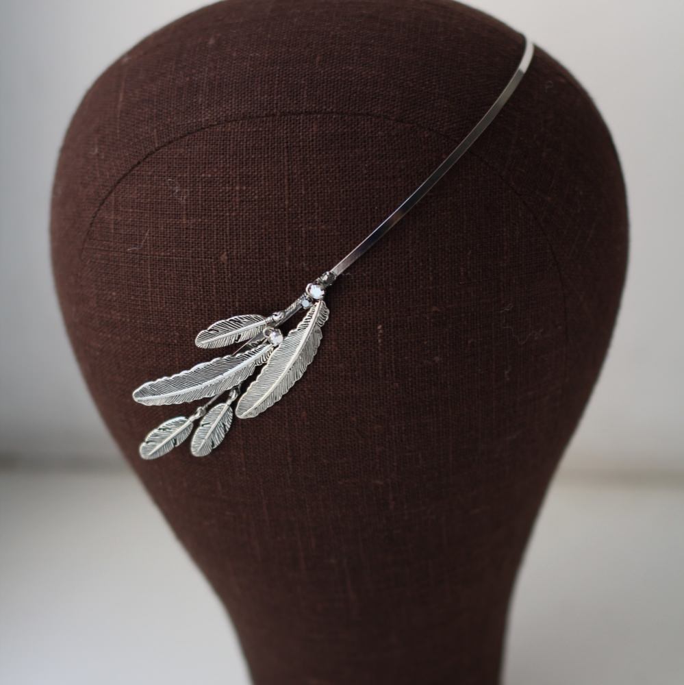 (※一般的なカチューシャをベースにしています。この両サイドにフェザーモチーフがデザインされています。)