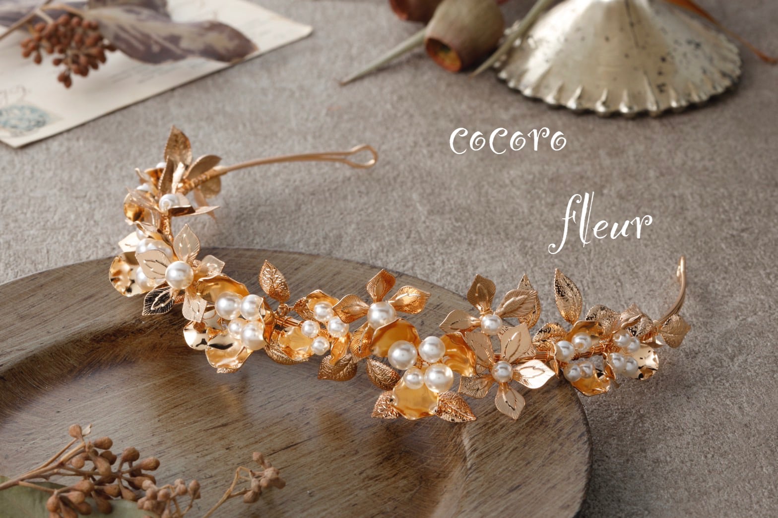 小枝ビジューカチューシャ ゴールドヘアパーツ ウェディングジュエリー 小枝ビジュー 袴 振袖 成人式 ヘアドレス ヘアパーツ【結婚式 ヘアアクセサリー】