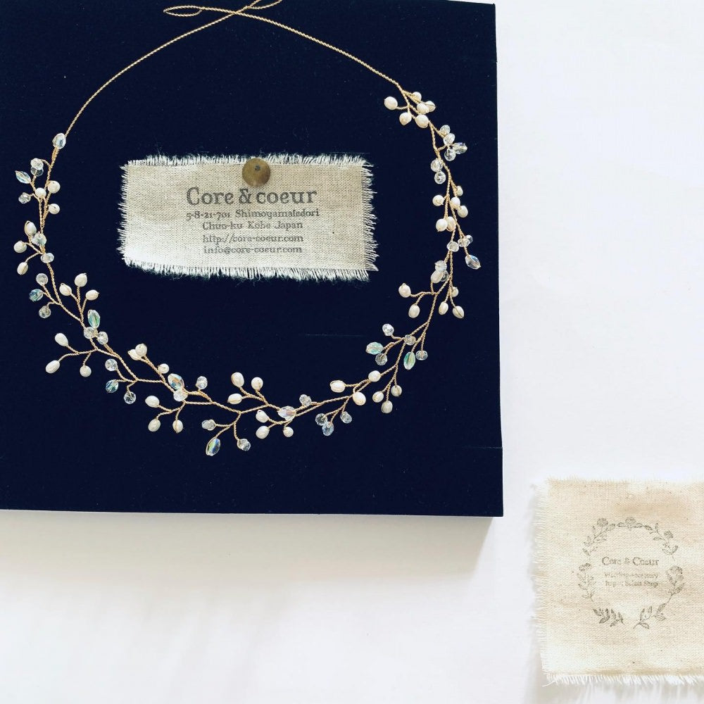 パールとクリスタルが散りばめられ、存在感を出しながらナチュラルな印象を与えてくれます。