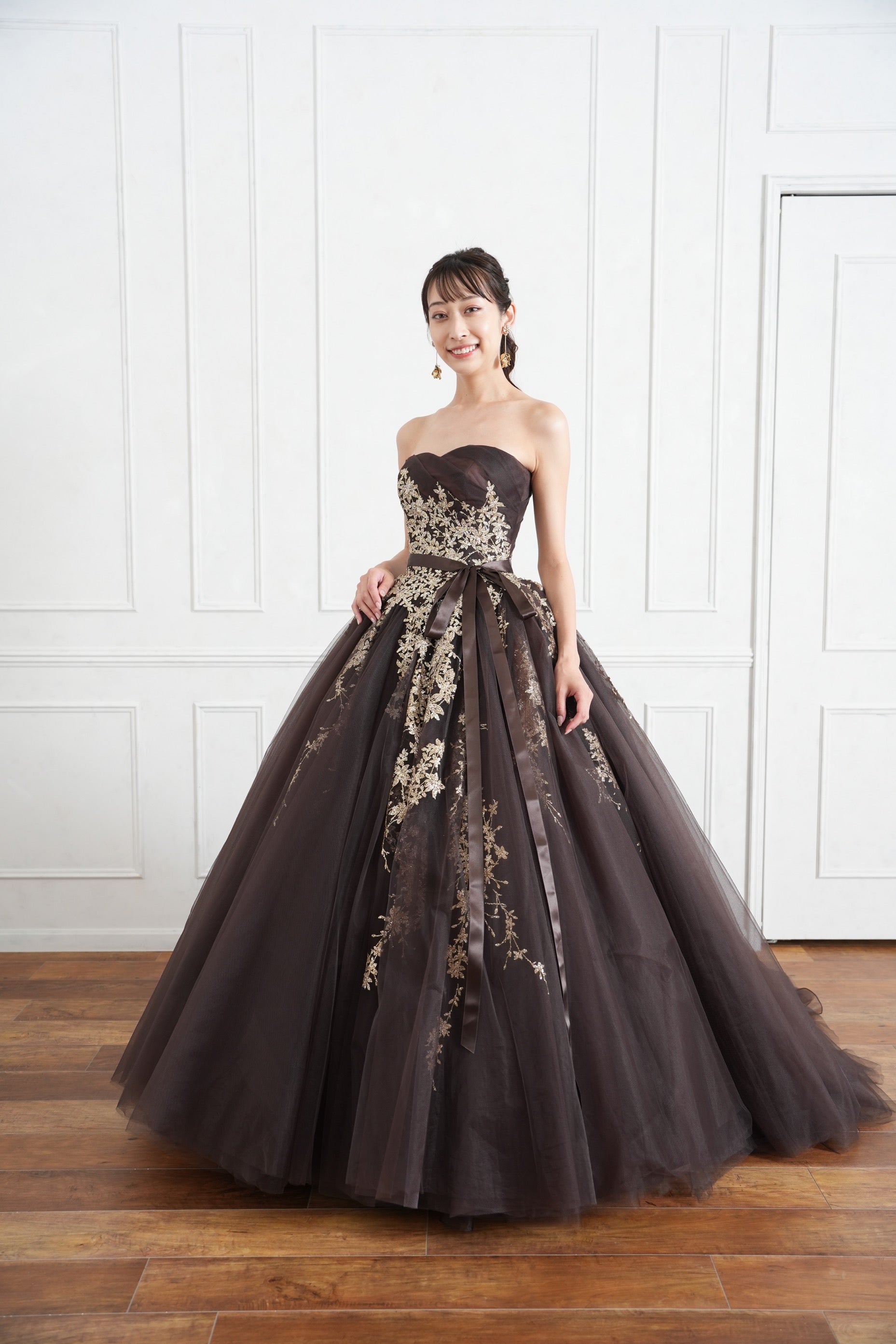 上質なチュールと絶妙なカラーリングによりワンランク上の特別なカラードレスに仕上がっております