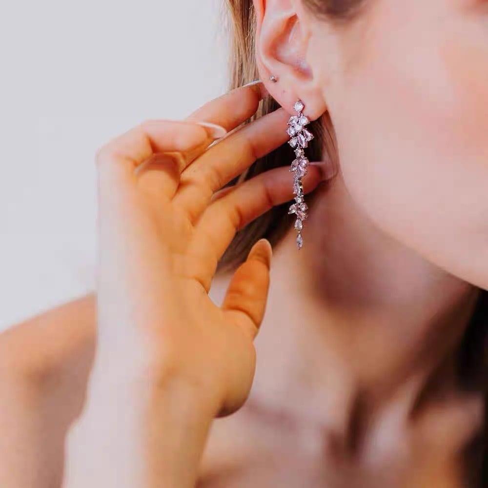 太陽の光が当たると、細かいキュービックジルコニアから美しい輝きが放たれより一層花嫁様を美しく彩ります。
