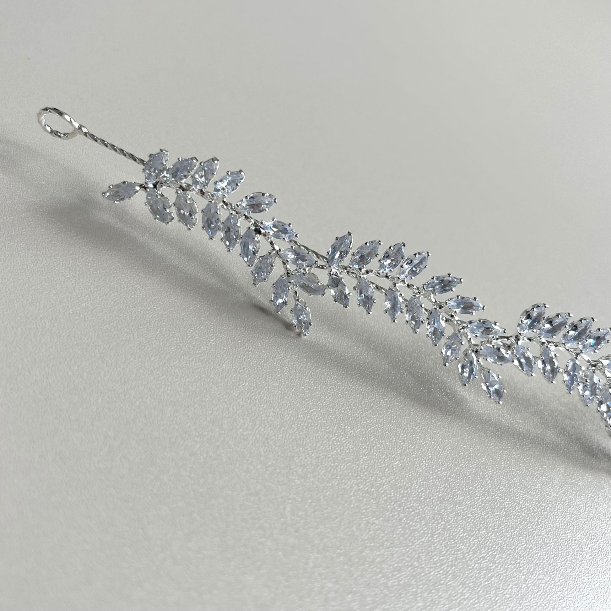 キュービックジルコニアをふんだんに使用してエレガントで上品なリーフ調のウェディングアクセサリー。