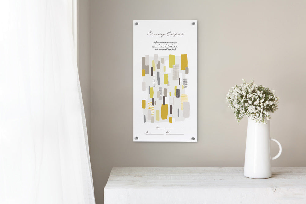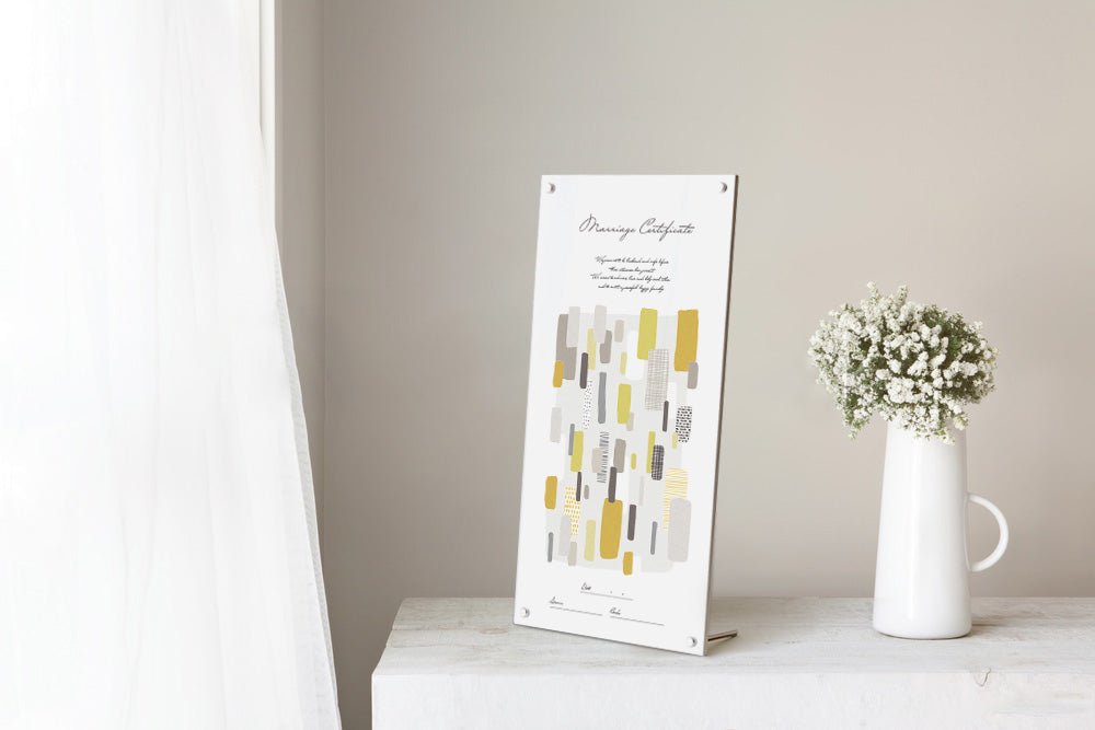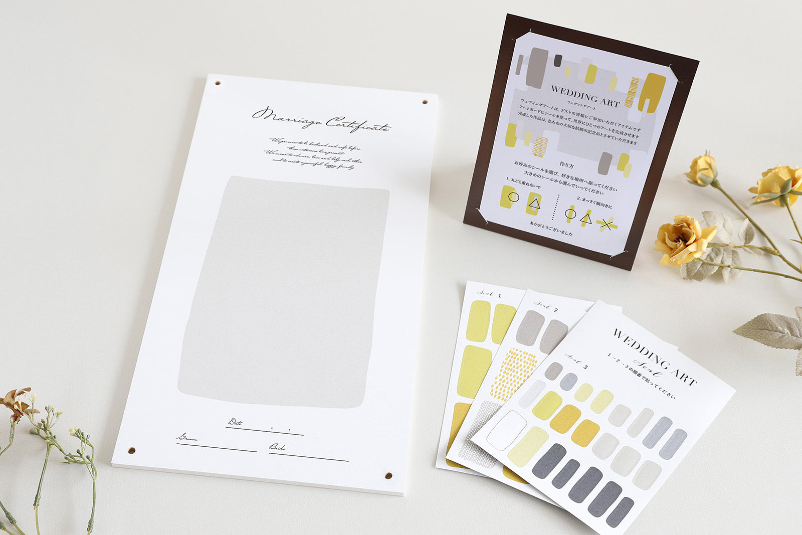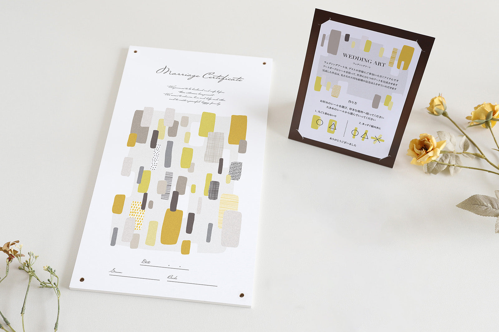 シールで作るゲスト参加型の結婚証明書・ウェディングアート(イエロー)【結婚式 結婚誓約書 ウェディング 挙式 ゲスト参加型】