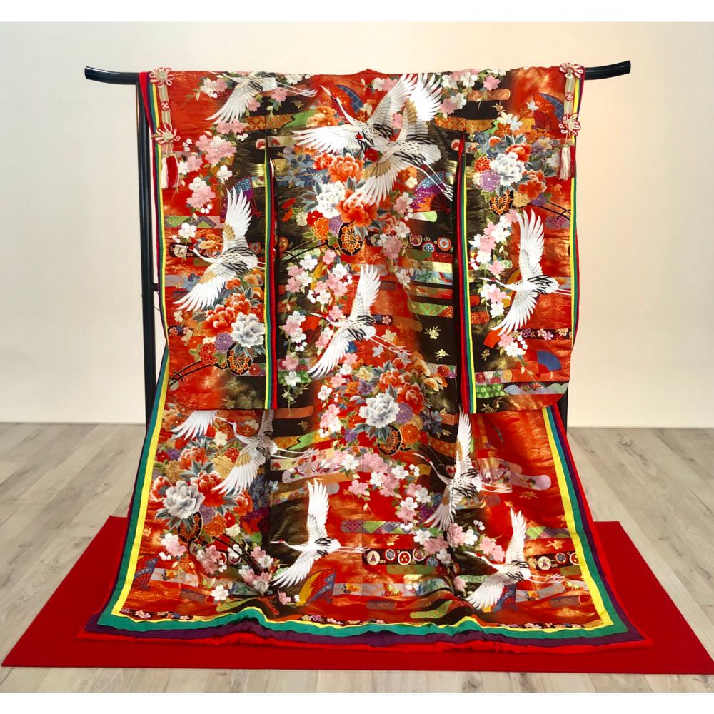 花車を舞う鶴が織りなす華やかさ、そして桜の文様が全体の雰囲気をひきたてます。