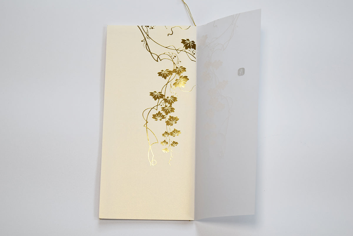 同柄が金箔で箔押しされた金の飾り中紙を重ね合わせたとき、