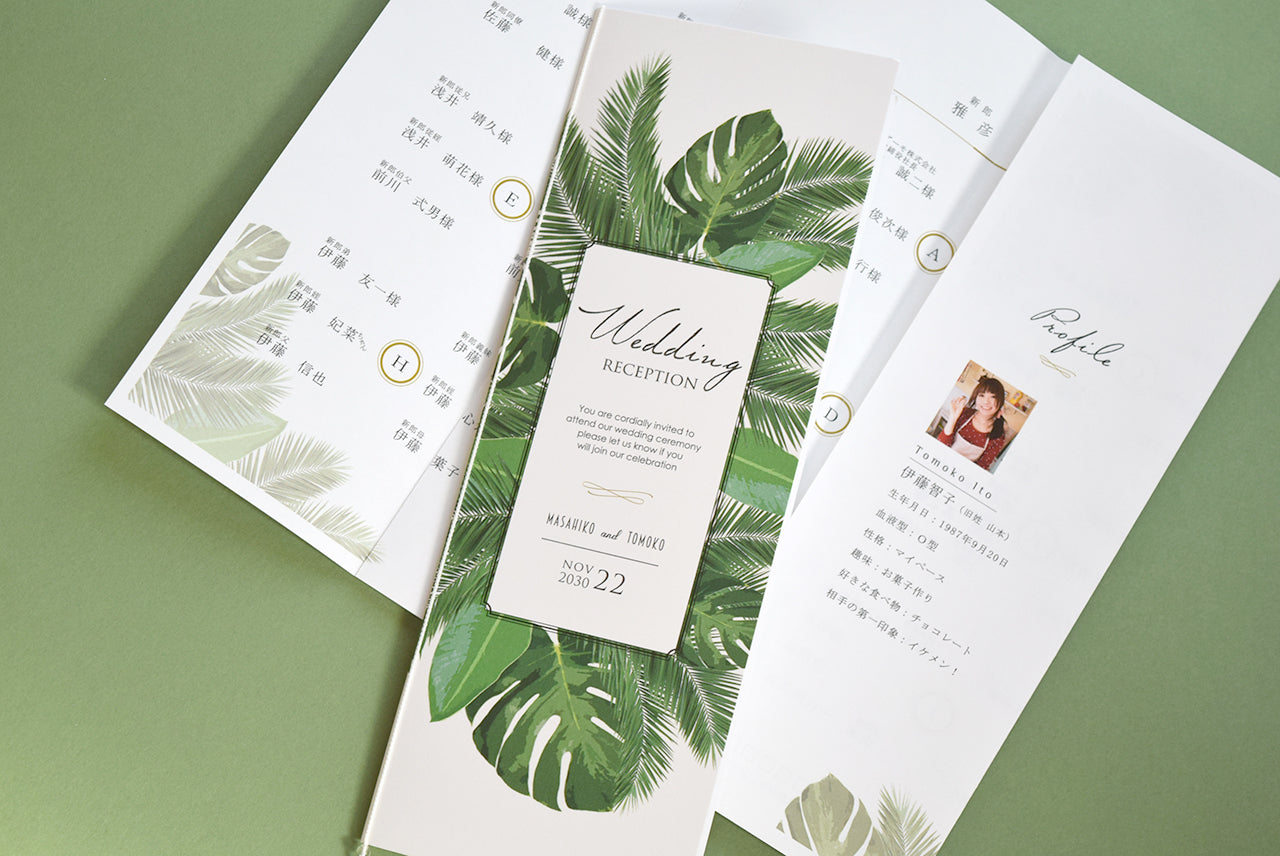 【結婚式 席次表 大人数専用】リーフ (印刷込み)【結婚式 ペーパー 席次表】