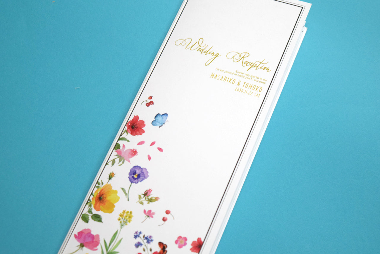 | 印刷備考 | 表面…席次表 裏面…挨拶・新居案内・メニュー・プロフィール(写真有) |