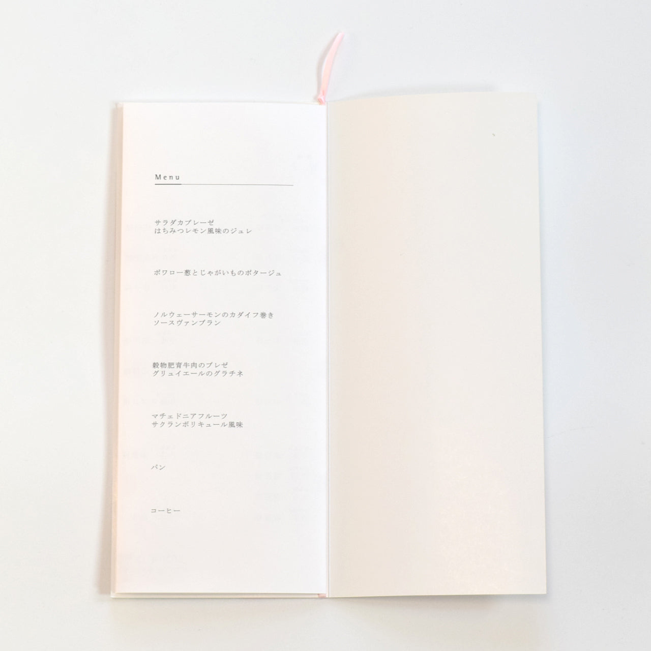 | 印刷備考 | 表面…席次表 裏面…挨拶・新居案内・メニュー・プロフィール(写真有) |