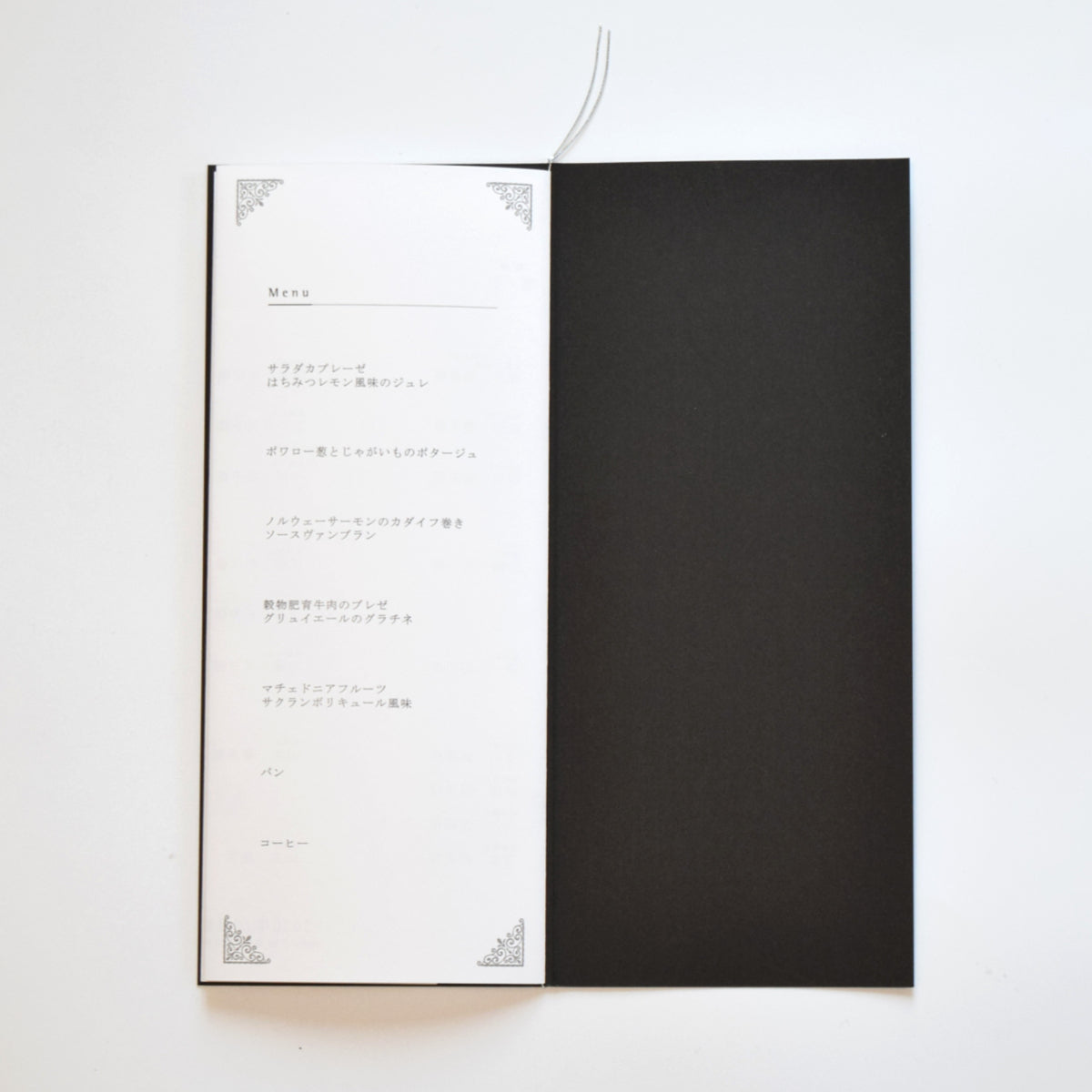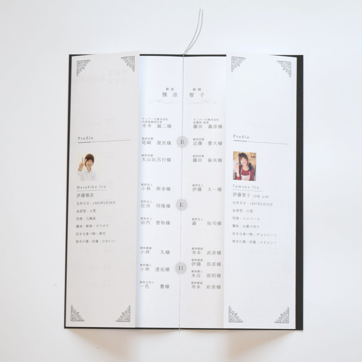 | 印刷備考 | 表面…席次表 裏面…挨拶・新居案内・メニュー・プロフィール(写真有) |