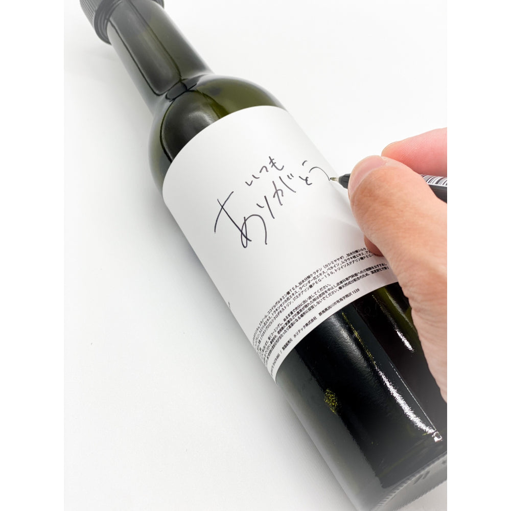 温かみのあるメッセージが書き込めるラベル、ワインのような洗礼されたデザインで感動と驚きのひとトキをお楽しみ下さい。