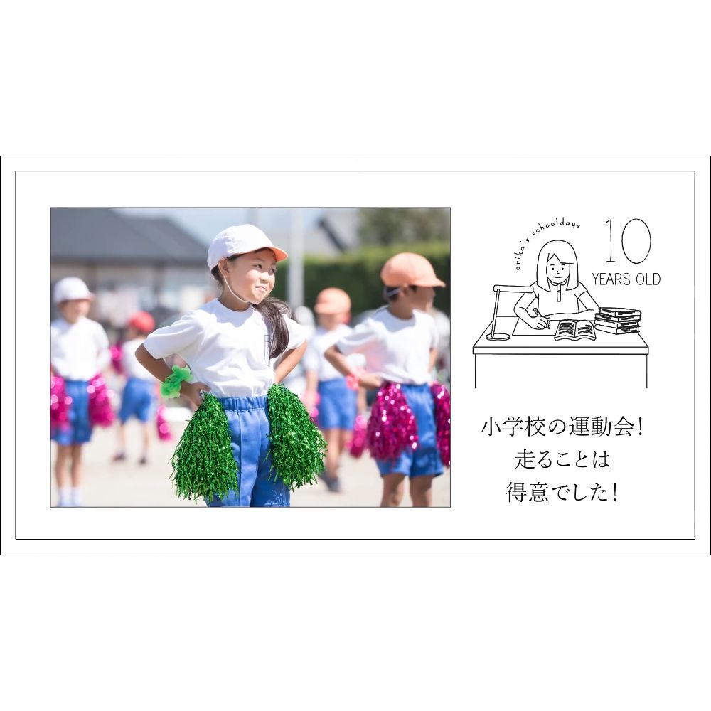 各パートには年代ごとに合わせたイラストを表示し、ご覧になるゲスト様にもかわいく見やすいムービーになっています。
