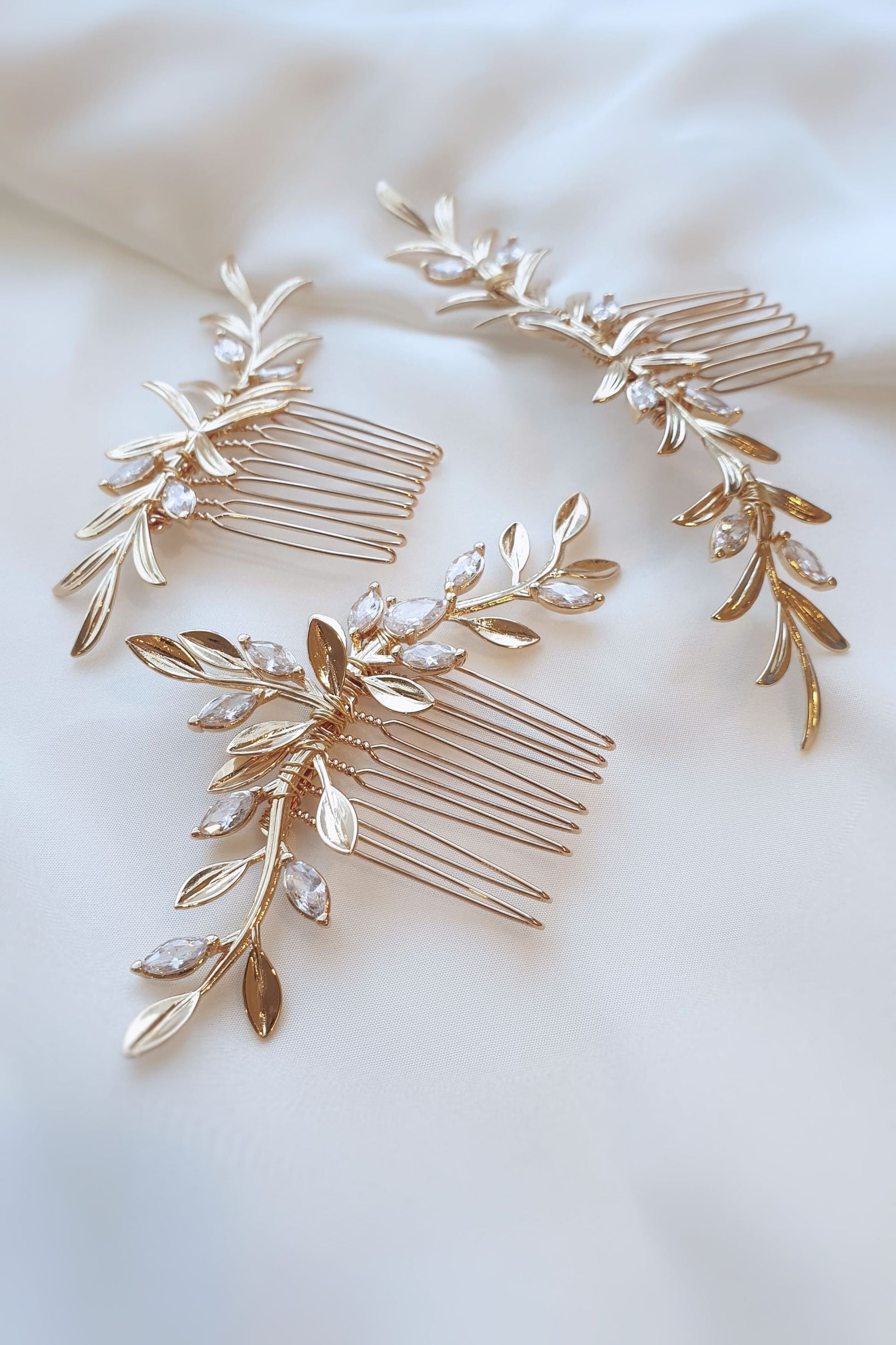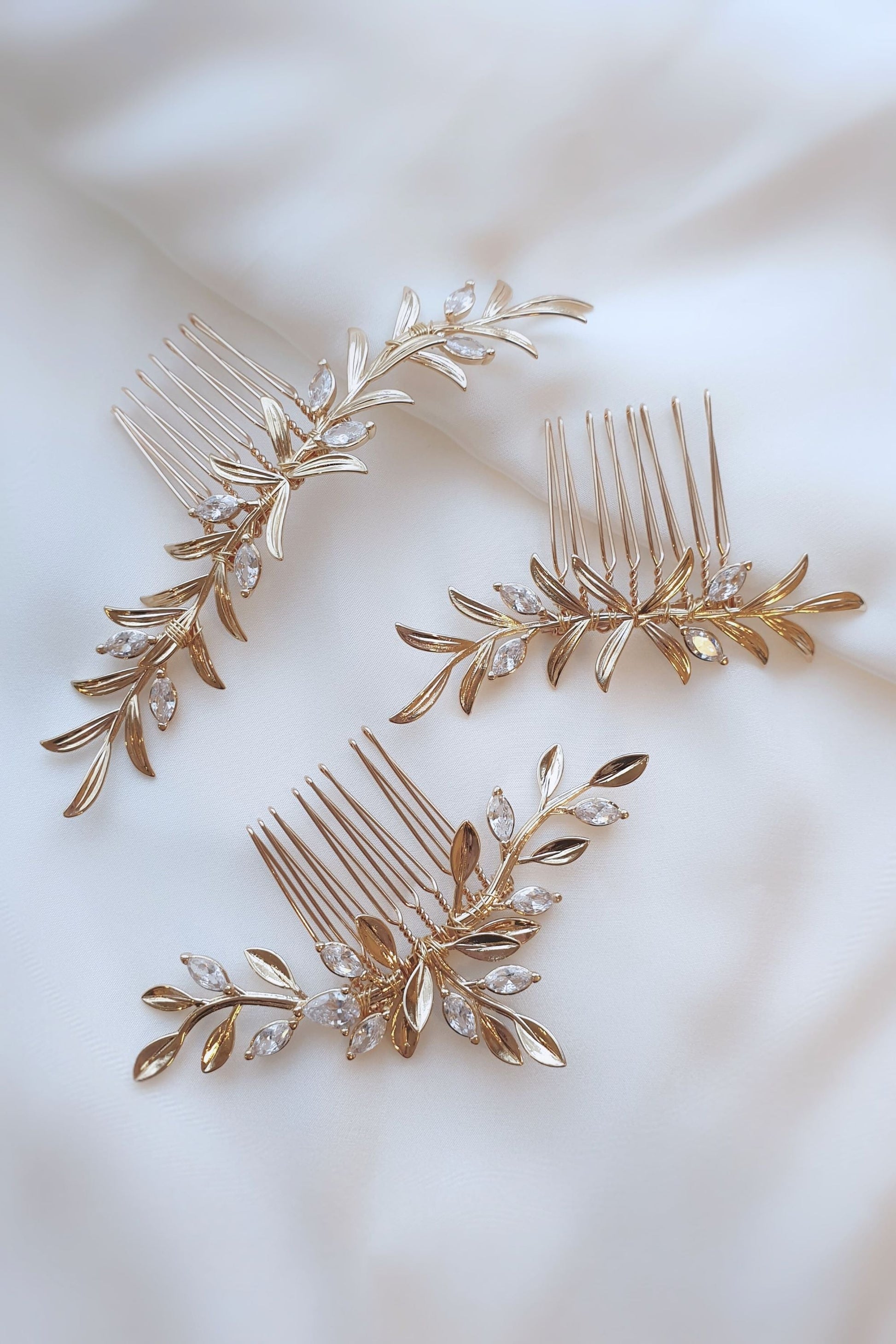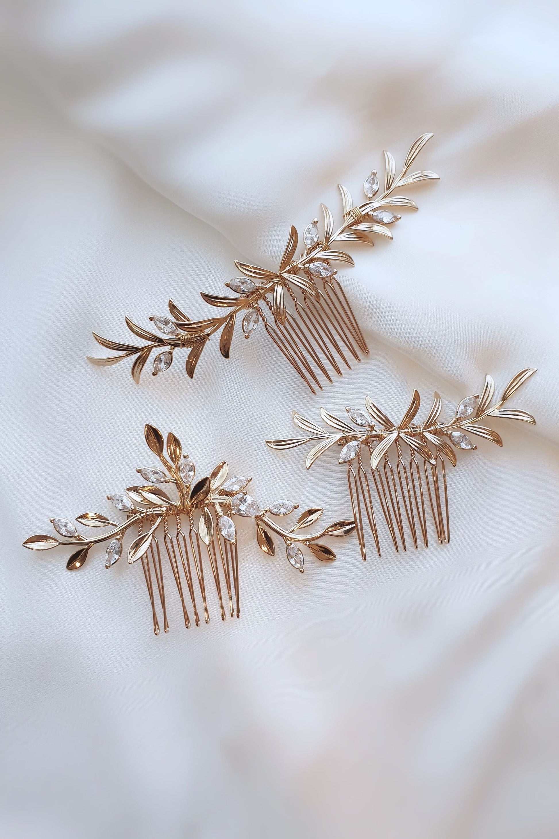 ジルコニアストーンが上品に輝くリーフモチーフのヘアコームセットです。