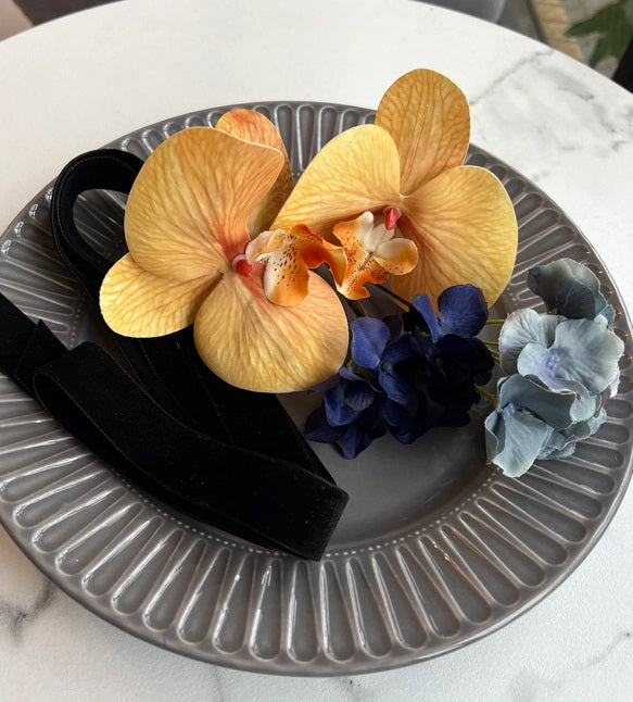 和装 成人式 パーティー【胡蝶蘭アプリコットイエロー】結婚式 ヘアアクセサリー