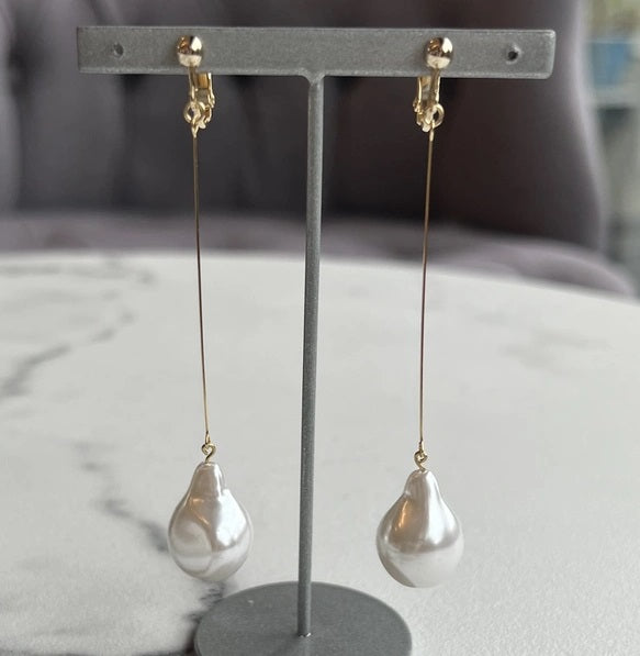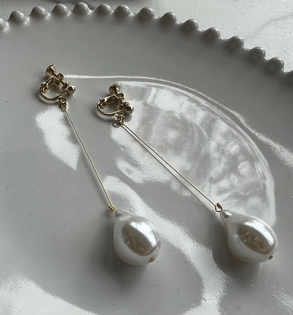 揺れるタイプ【バロック1粒】結婚式 ピアス イヤリング