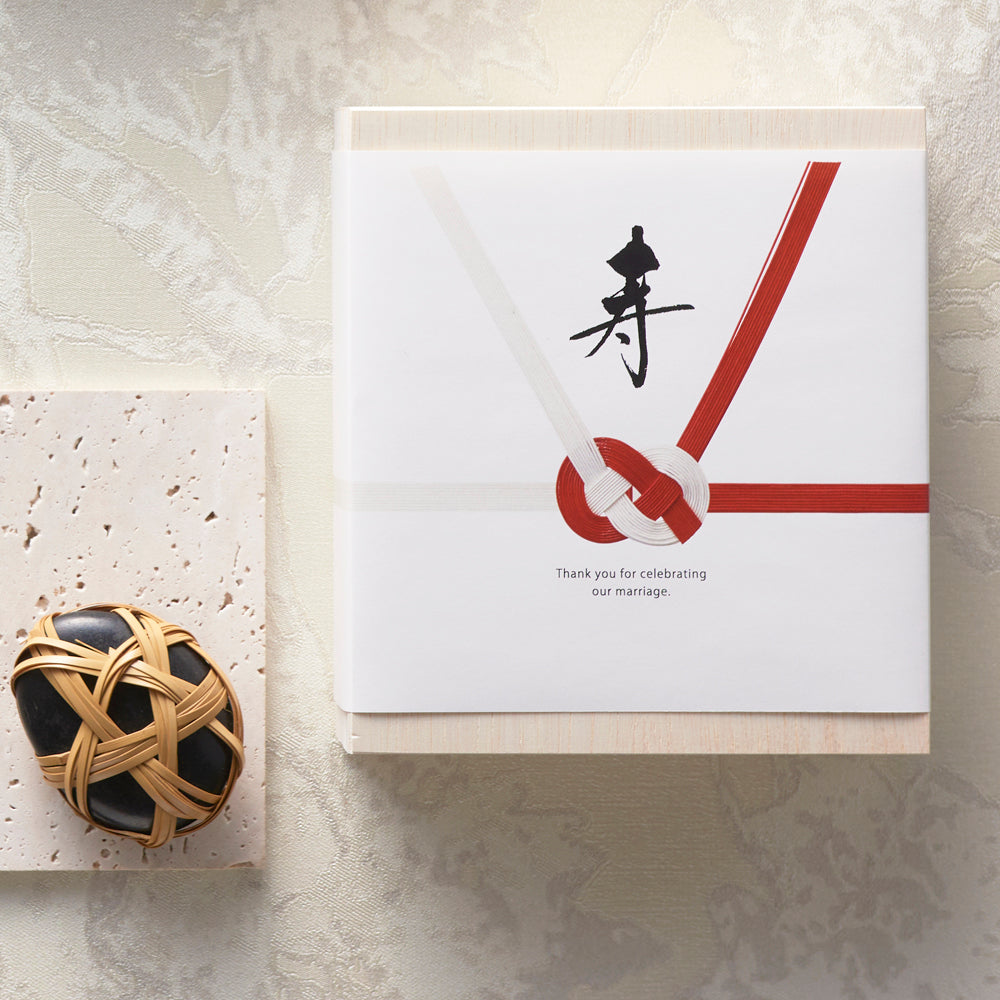 熨斗紙を巻いたブライダル専用ボックスでお贈りします。