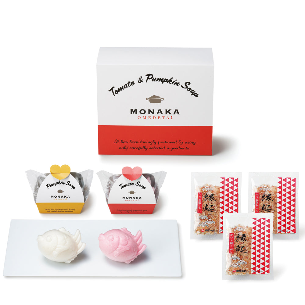 心もカラダも温まるスープとかつお節のセットで食卓を彩ります。