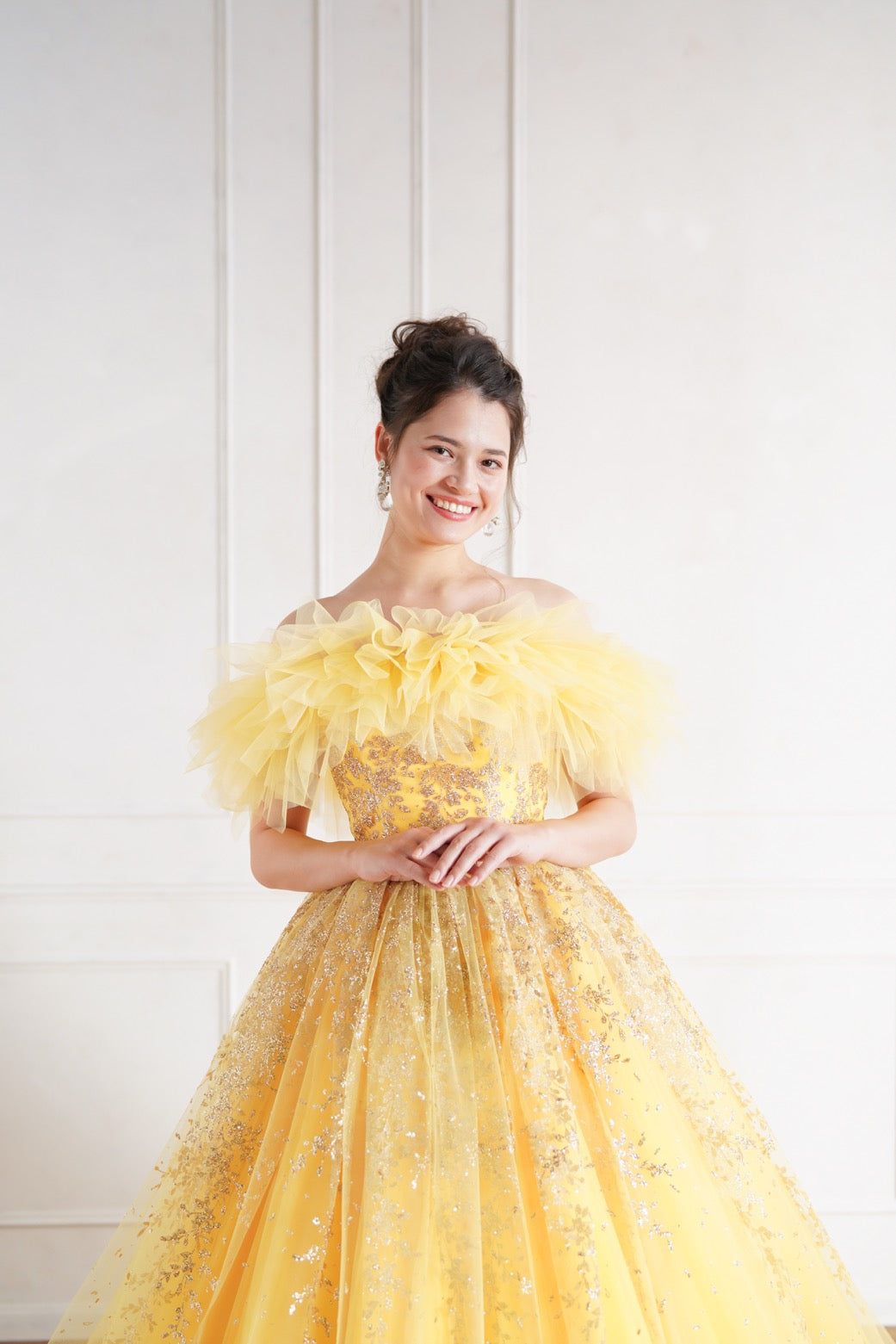 フワフワとしたボリューミーなお袖は取り外し可能で、すっきりと着ても可愛いドレス。
