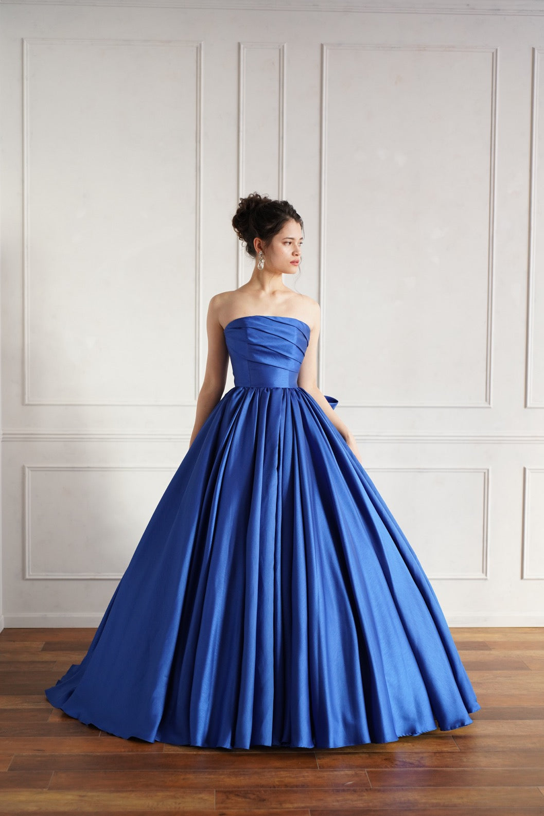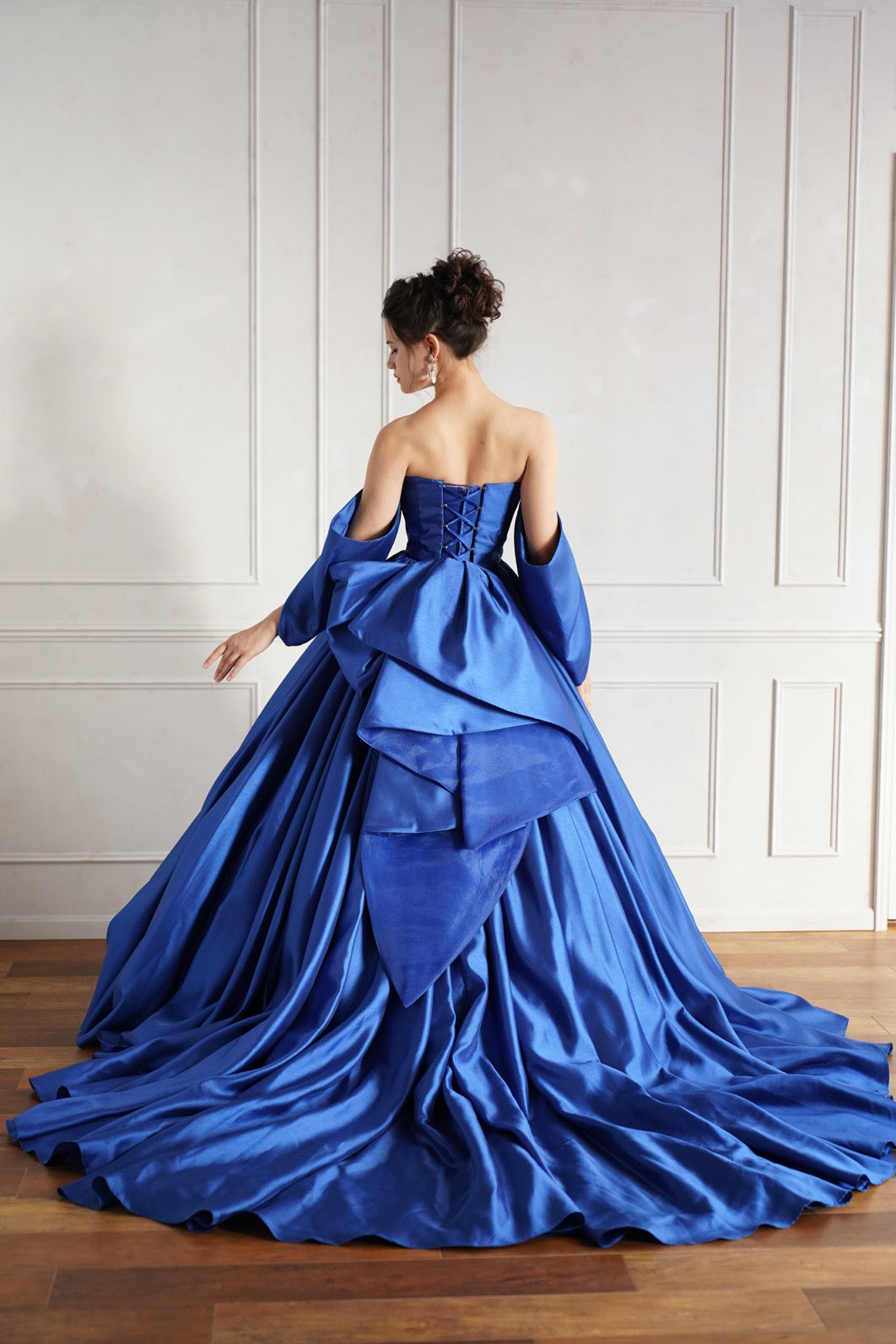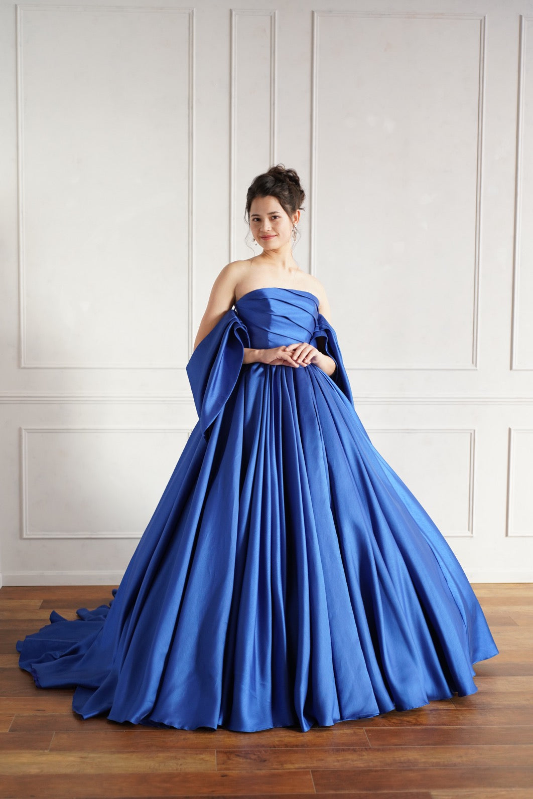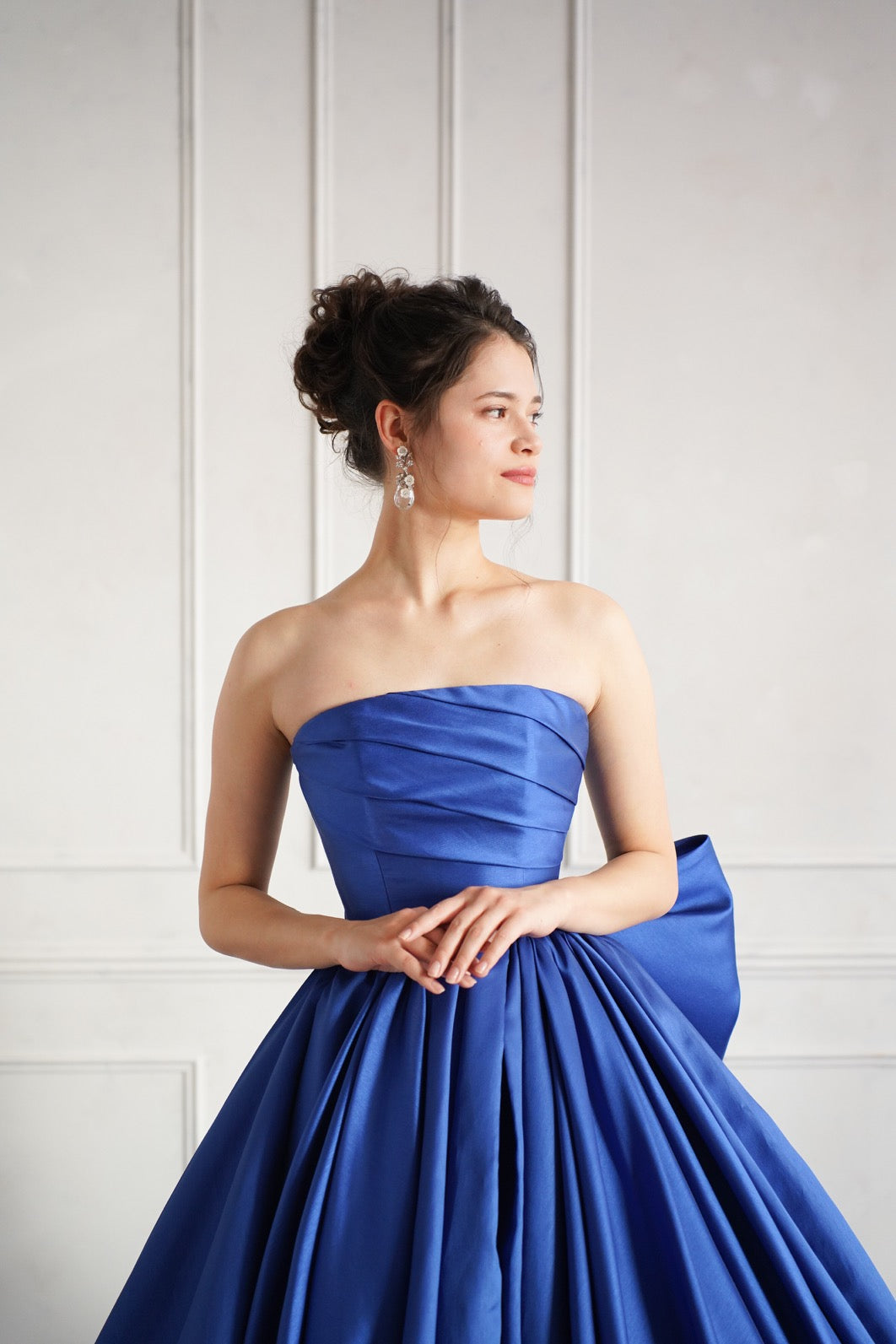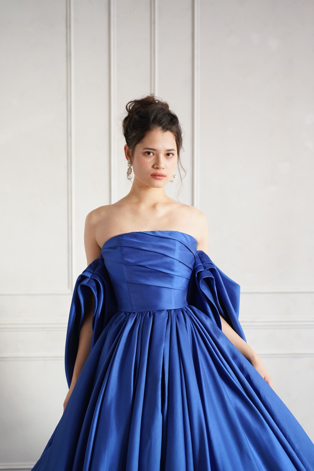 優美なラインとドレープ感に溢れた、シャンタンサテンオーガンジーを贅沢に使用したシンプルさが際立つドレスです。