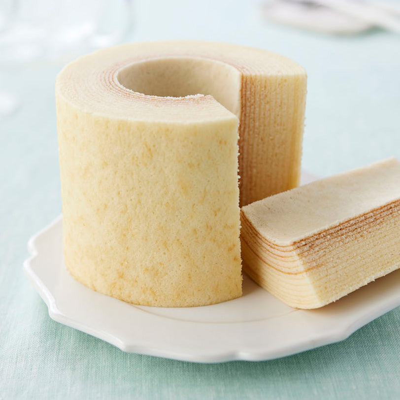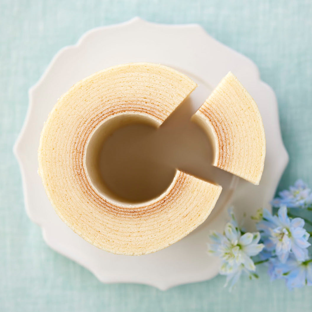 クーベルチュールホワイトチョコレートを生地に混ぜ合わせることで「純白」を表現。うっとりする食感とミルキーな味わいのバウムクーヘンです。