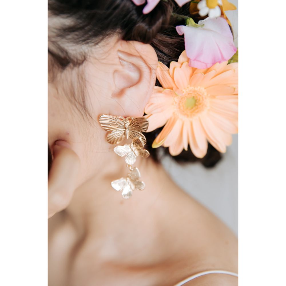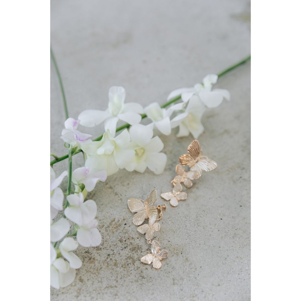 蝶をイメージしたデザインは、煌めきと美しさを同時にご演出し、お耳元で揺れる優雅さはブライダルシーンに一層の輝きを添えてくれることでしょう。