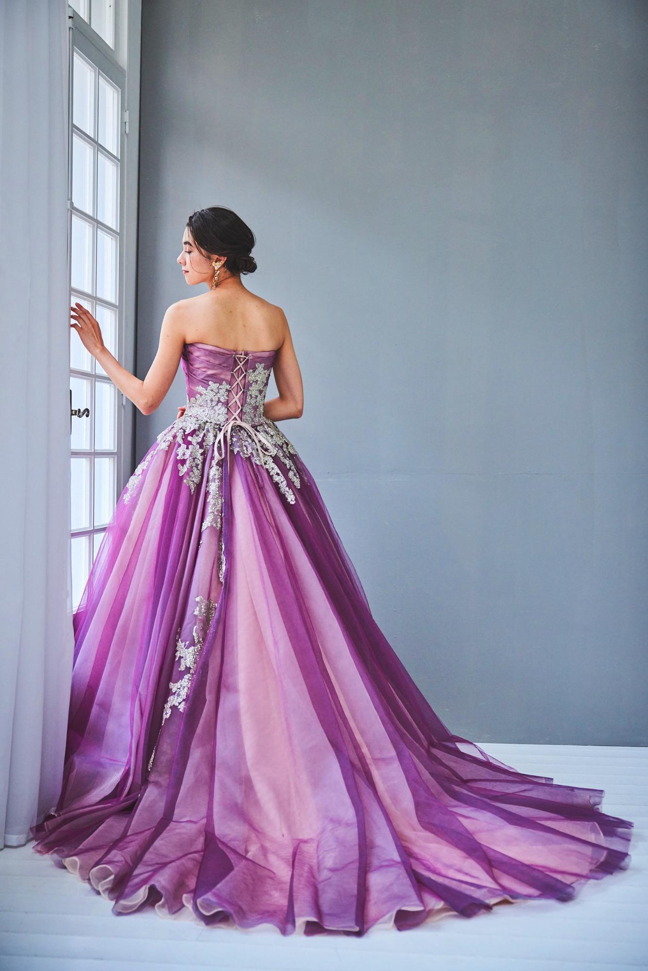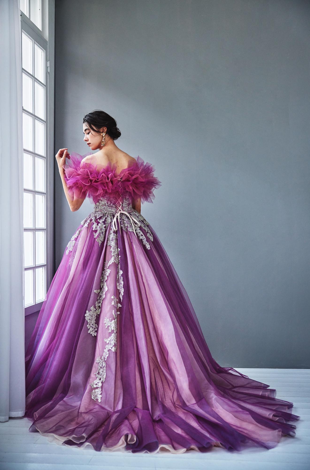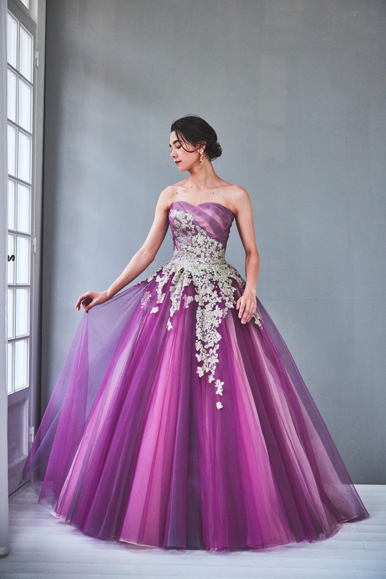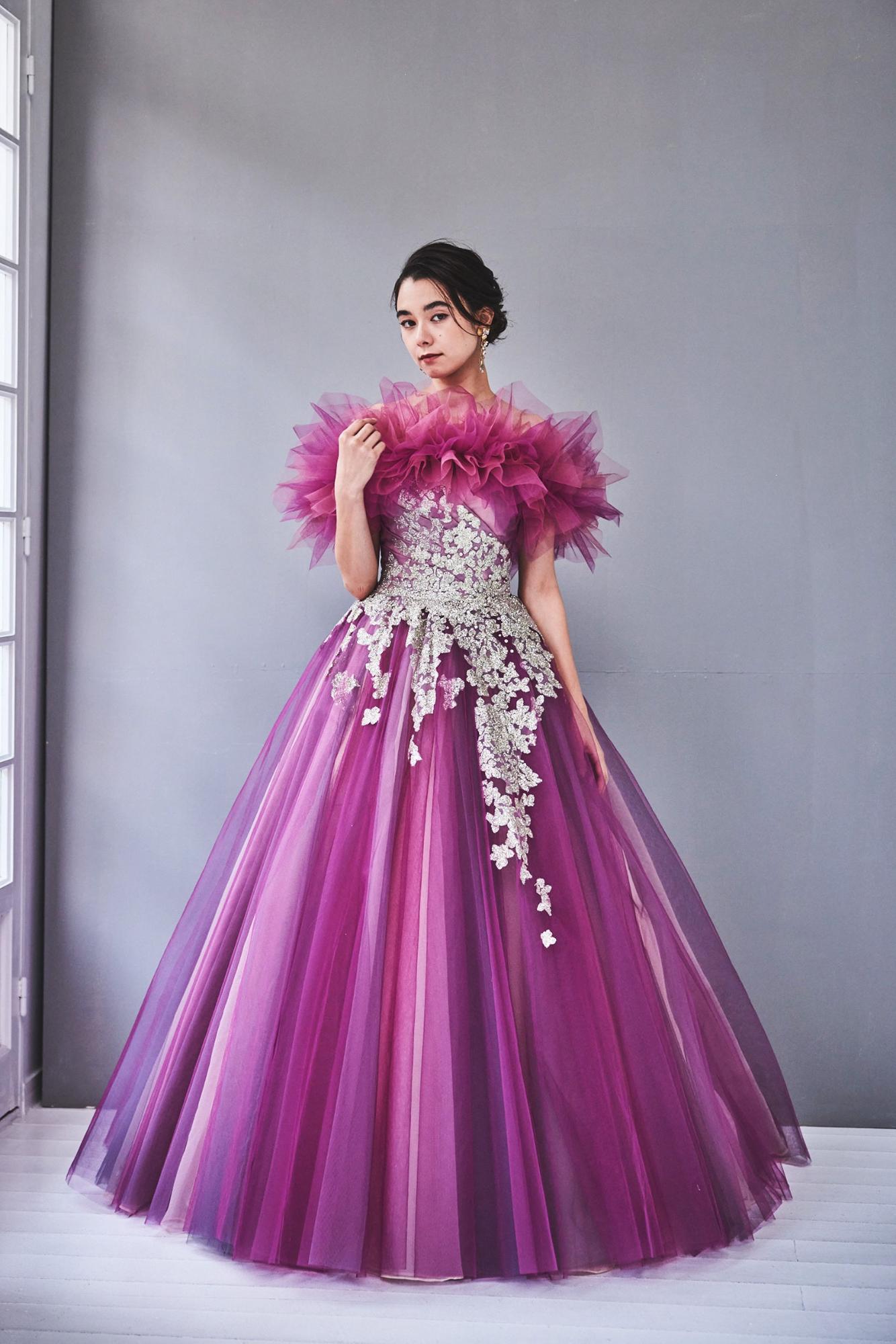 ビビットなパープルチュールにピンク、ブルーの色を重ねることで色の深みを表現。