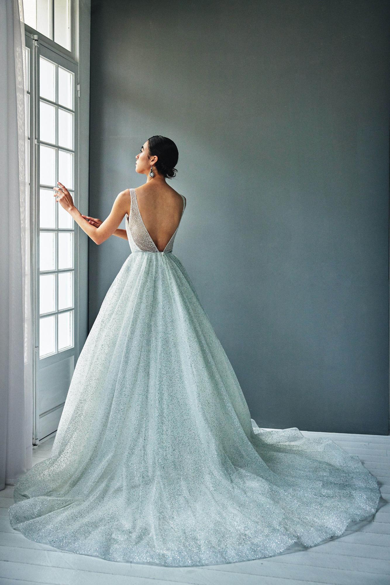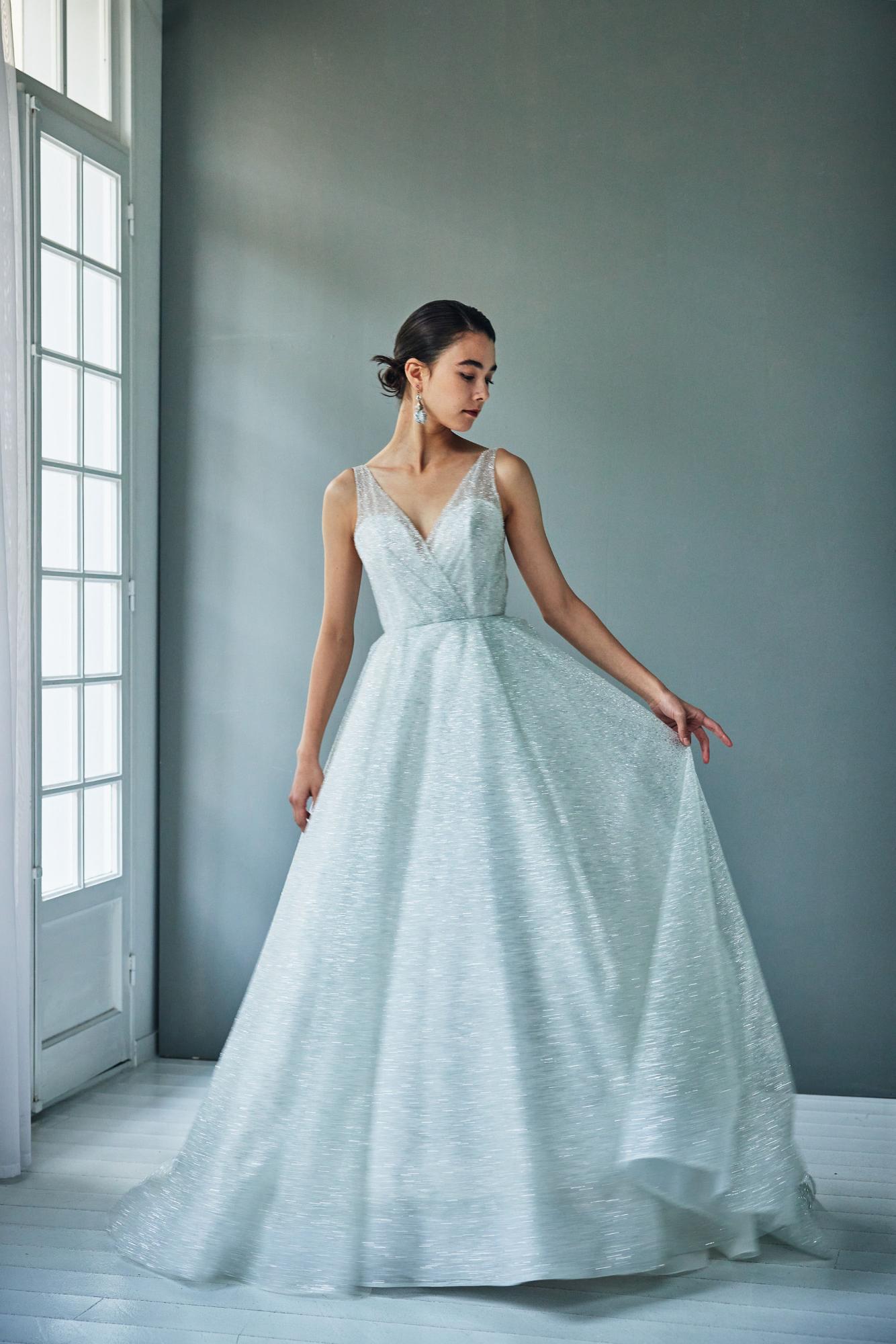 ドレス全体に施されたグリッターは揺れるたびに煌めき、花嫁姿を輝かせる。