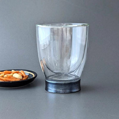 このグラスは二重構造の耐熱グラスの為熱い飲み物を入れてもガラスが熱くなりにくいです。冷たい飲み物は結露が生じにくくなっております。