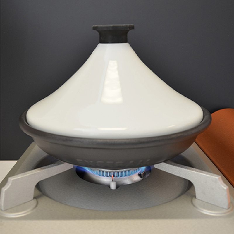 ニュータジン鍋は、従来のタジン鍋が得意とした蒸し料理だけでなく、従来品では焦げつきなどで出来なかったステーキや魚介類の焼き料理が美味しくでき、現代の食生活に合った新商品です。