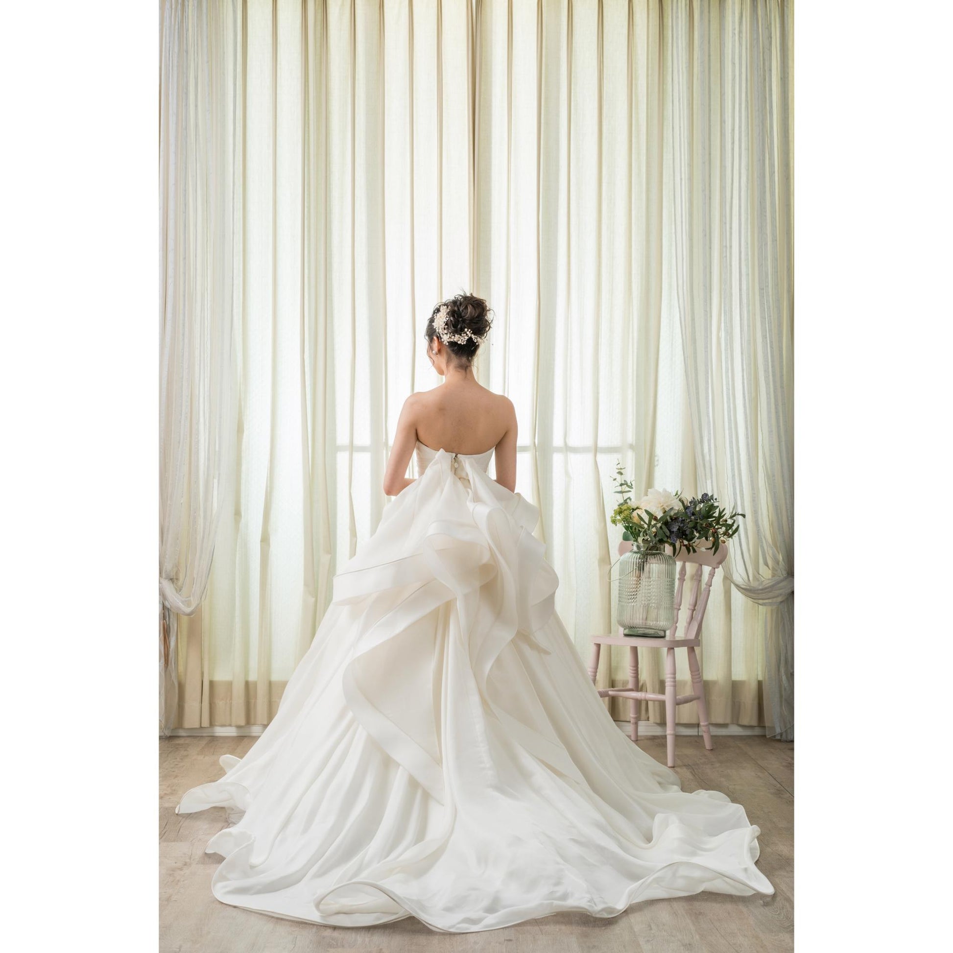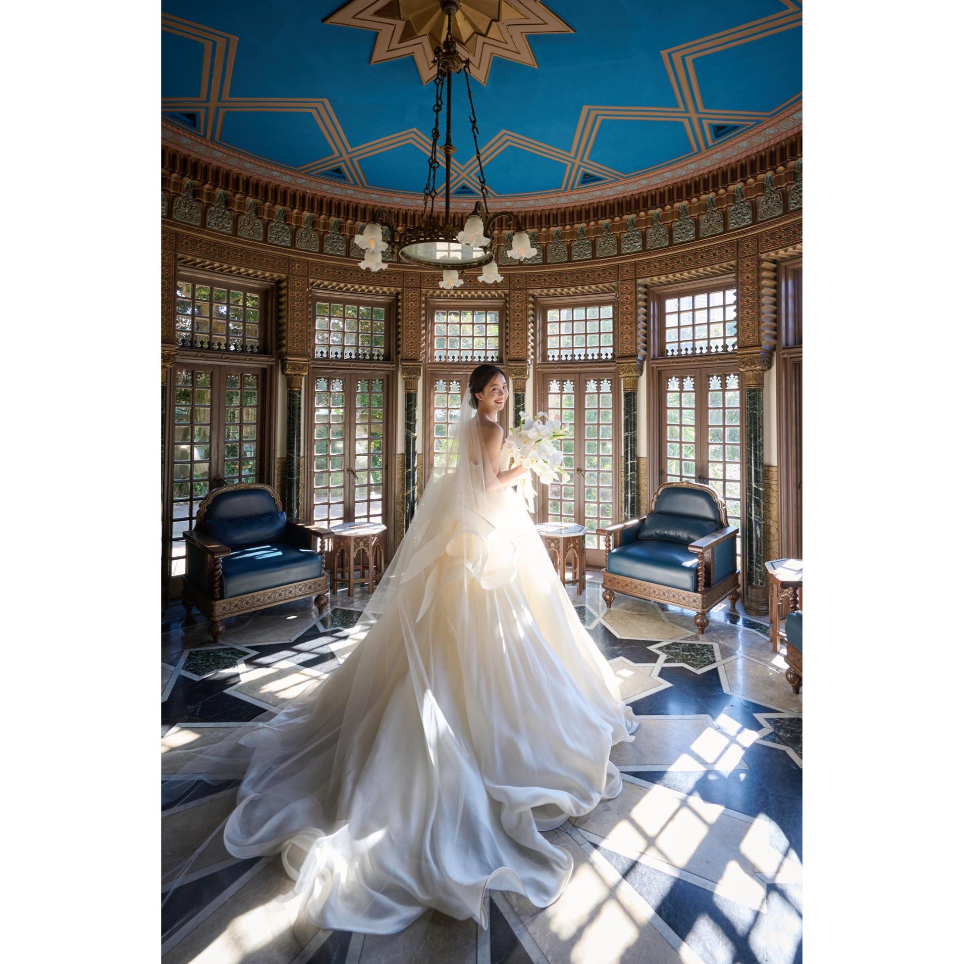 大人っぽく、小物やヘアなどで可愛らしくもなるドレスなので、どんな式場でも合わせることができます♡