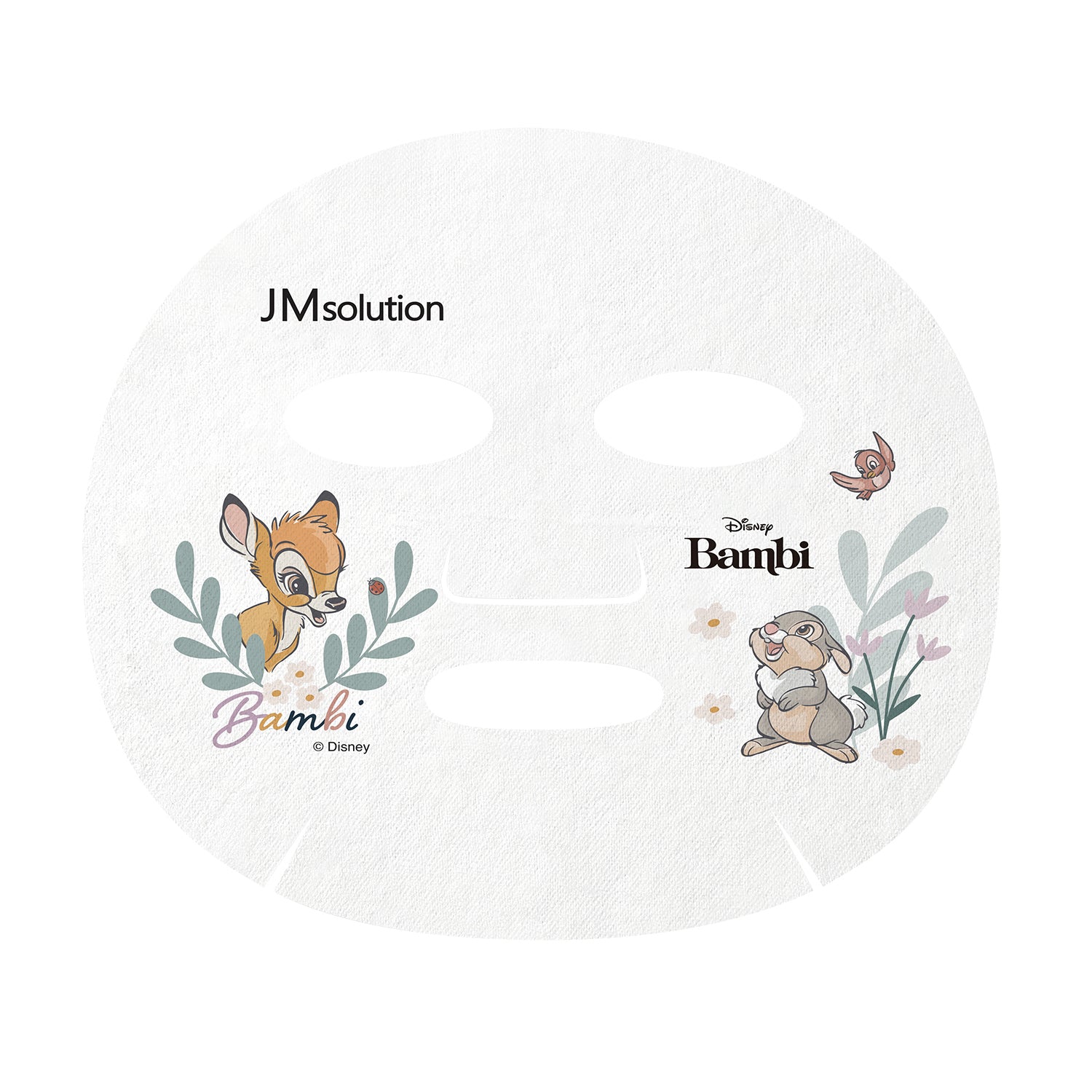 ツボクサエキス、ティーツリーエキス、サリチル酸配合で肌荒れを防ぎ、お肌に潤いを与えなめらか肌へ導くディズニーのキャラクターがプリントされたJMsolutionのフェイスマスク