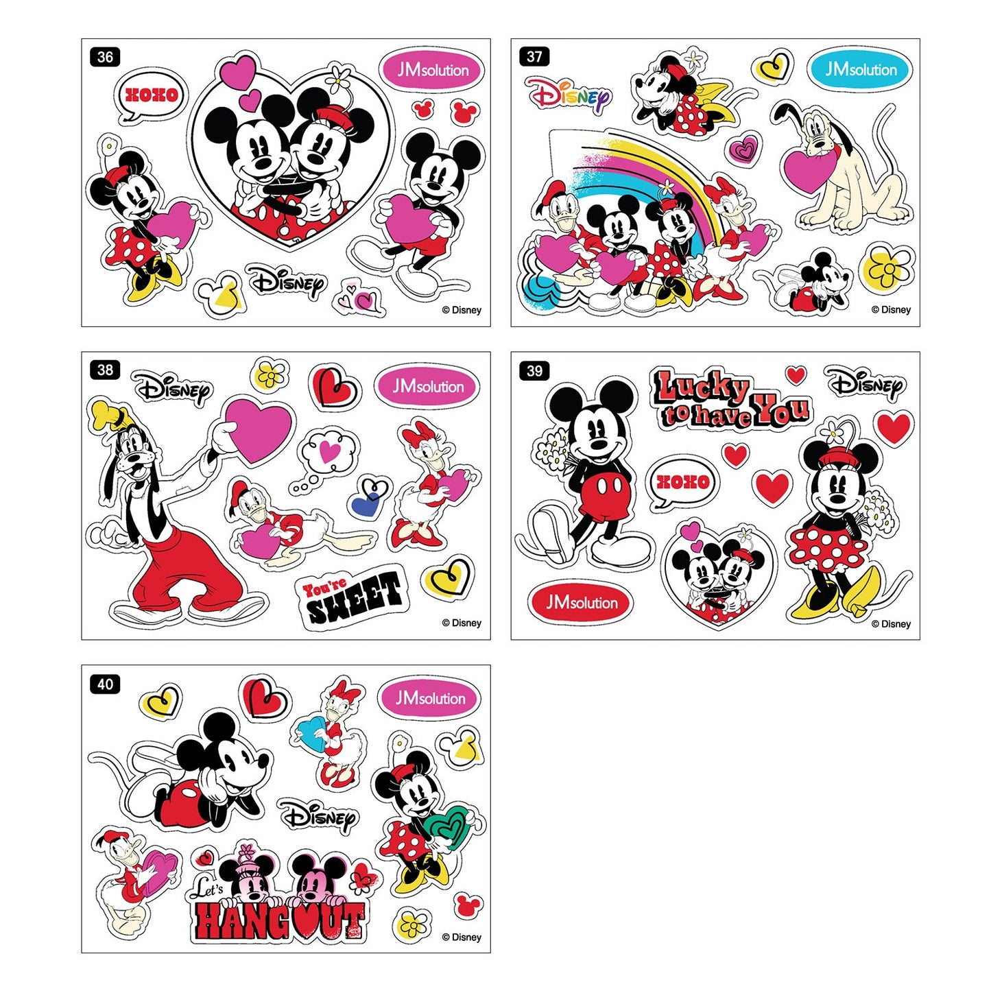 11種のビタミン、セラミド、ナイアシンアミド配合で美容液たっぷりのシートマスクがしっとりキメ肌に導くディズニーキャラクターのステッカーが入ったJMsolutionのフェイスマスク