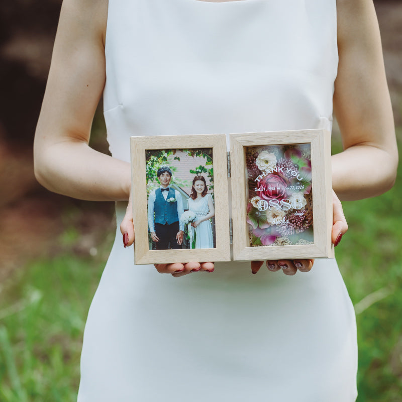 ナチュラルなお花を敷き詰めたボックスに、生まれた日から記念日までの日数を印字した、世界にひとつだけのフォトボックスです。