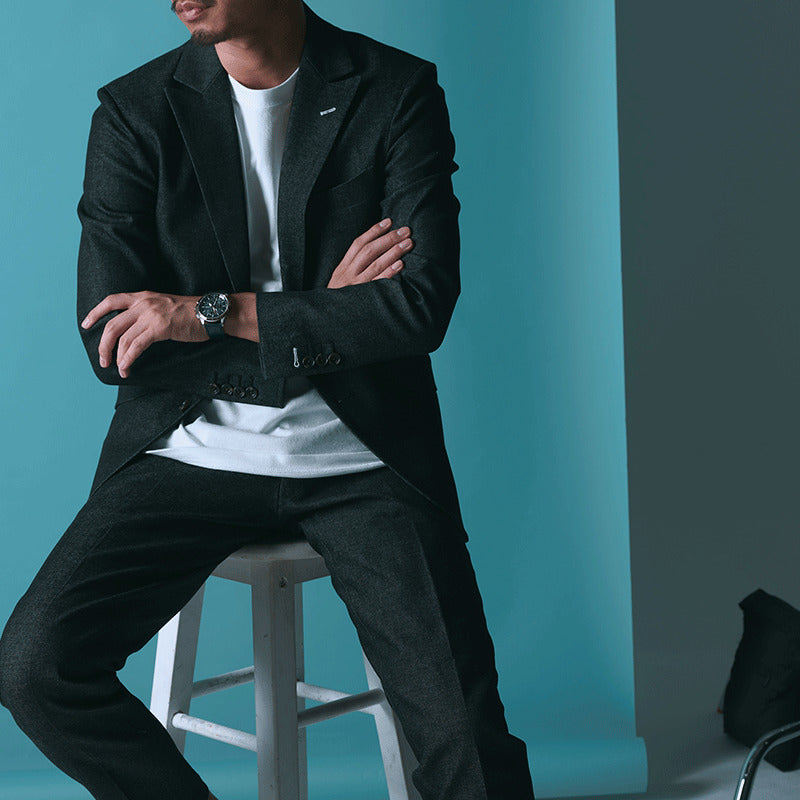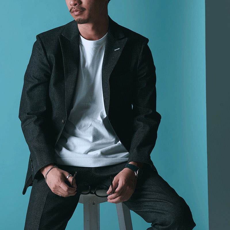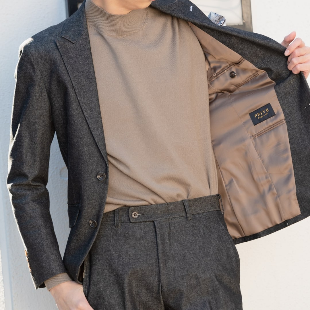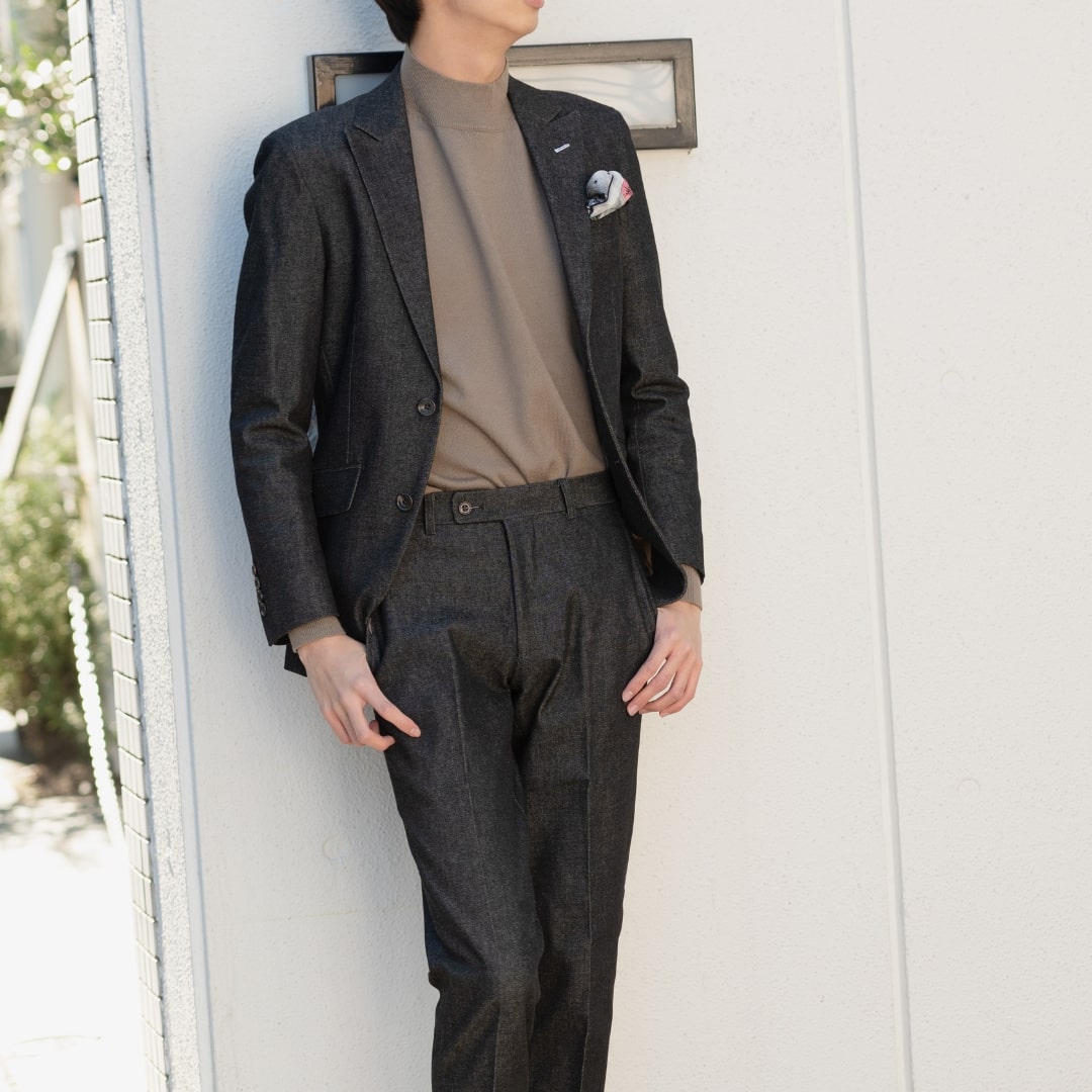 カジュアルなデニム生地ですが、スーツの形でお作りしているのでこれを着るだけでパリッとした印象をもたらします。