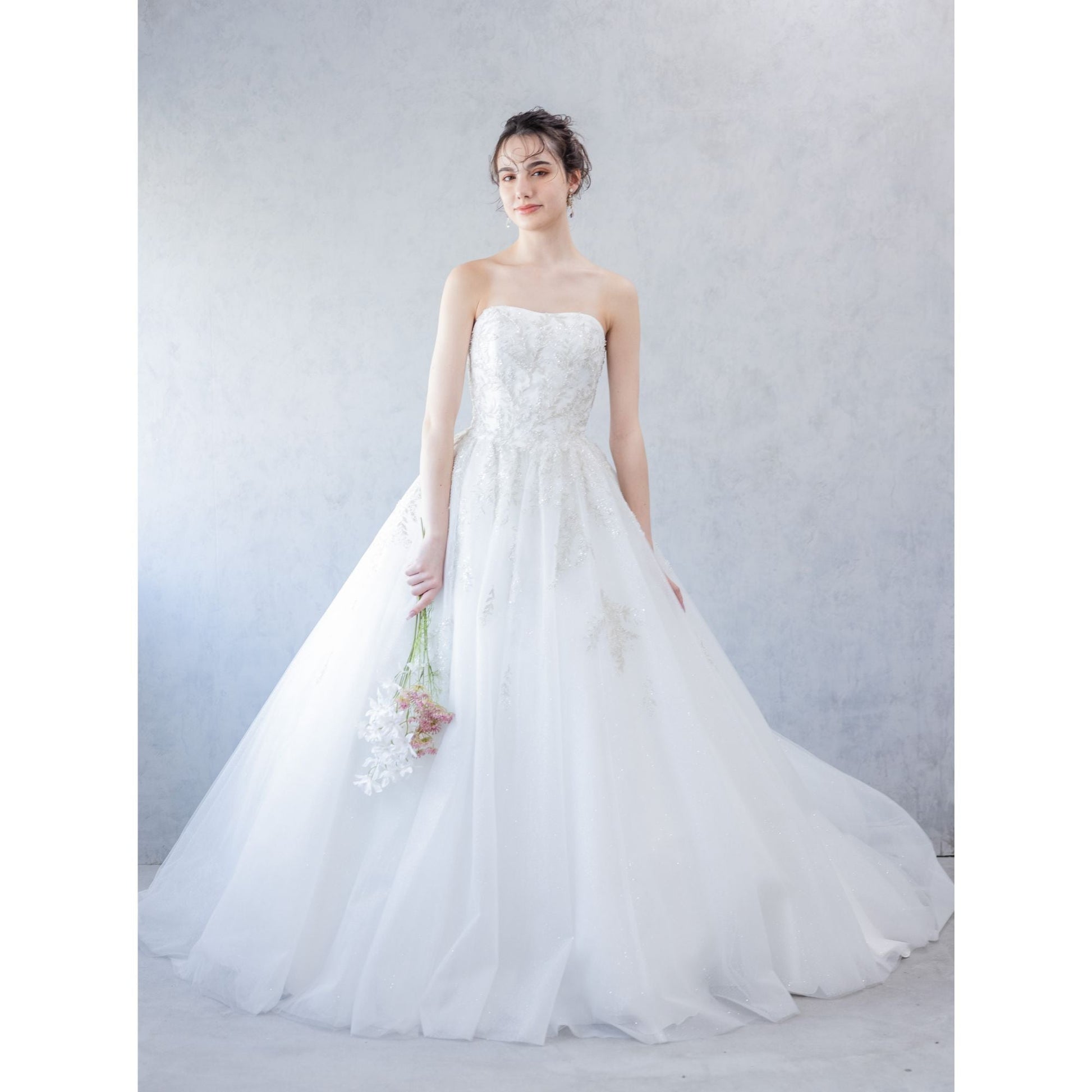 スカートやパフスリーブには歩くたびにきらびやかに光り輝くラメチュールを取り入れました