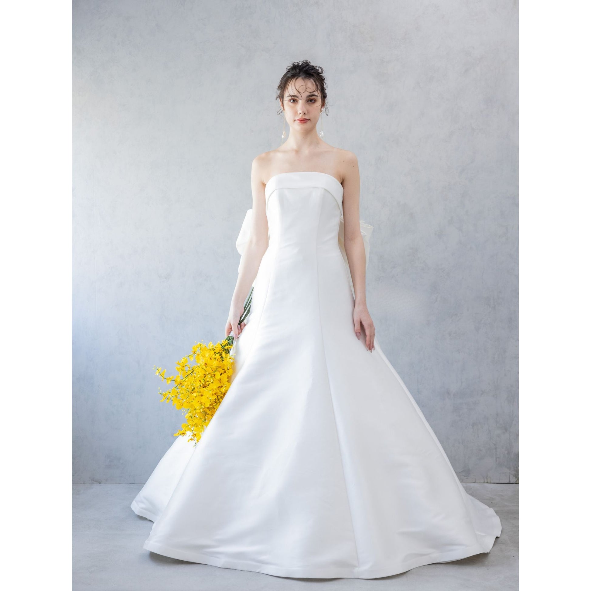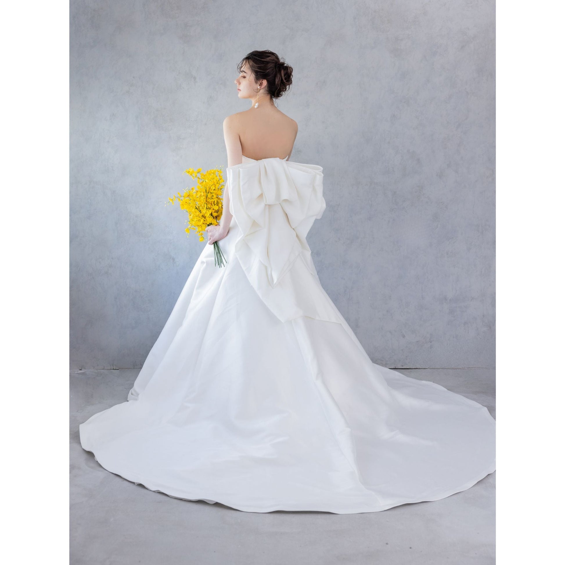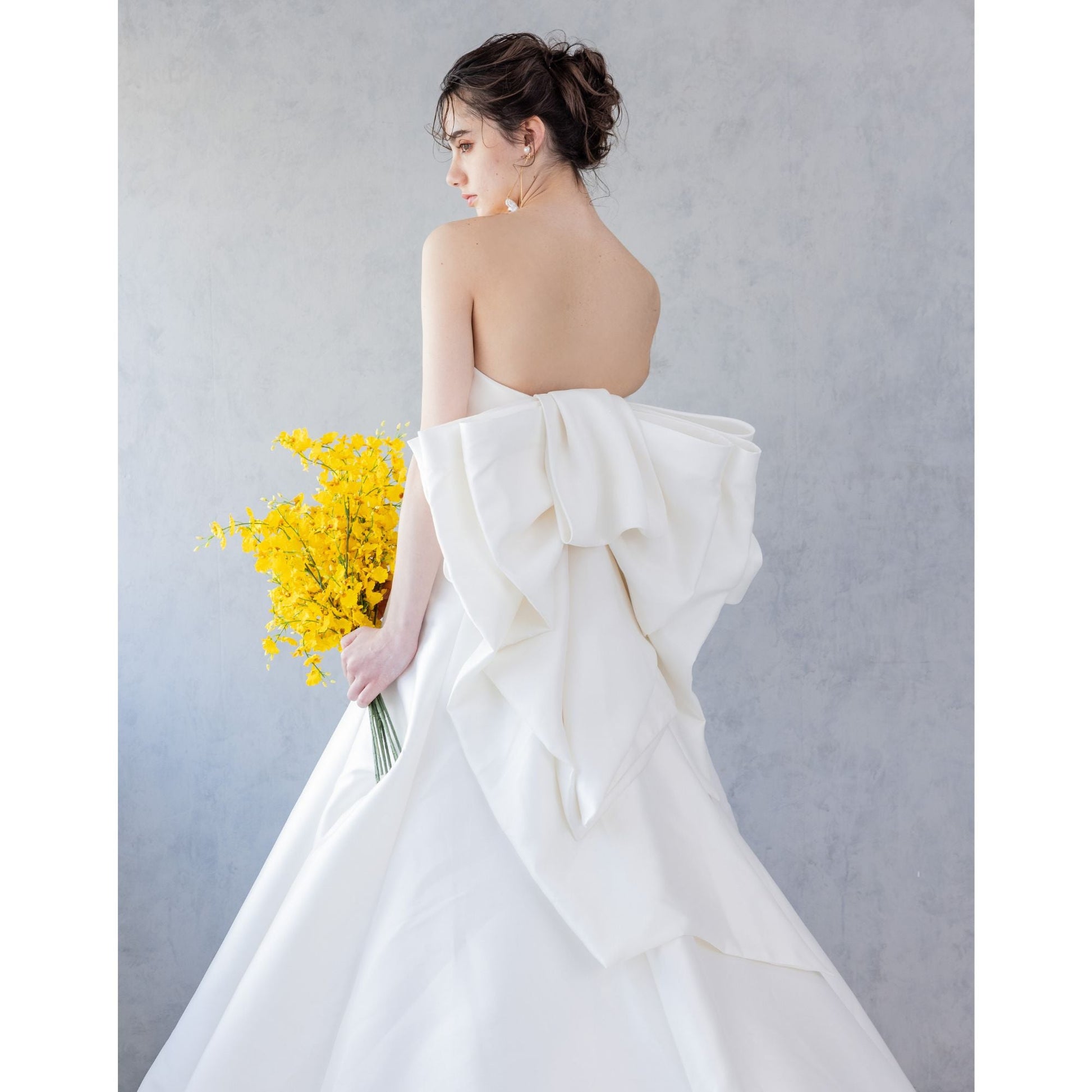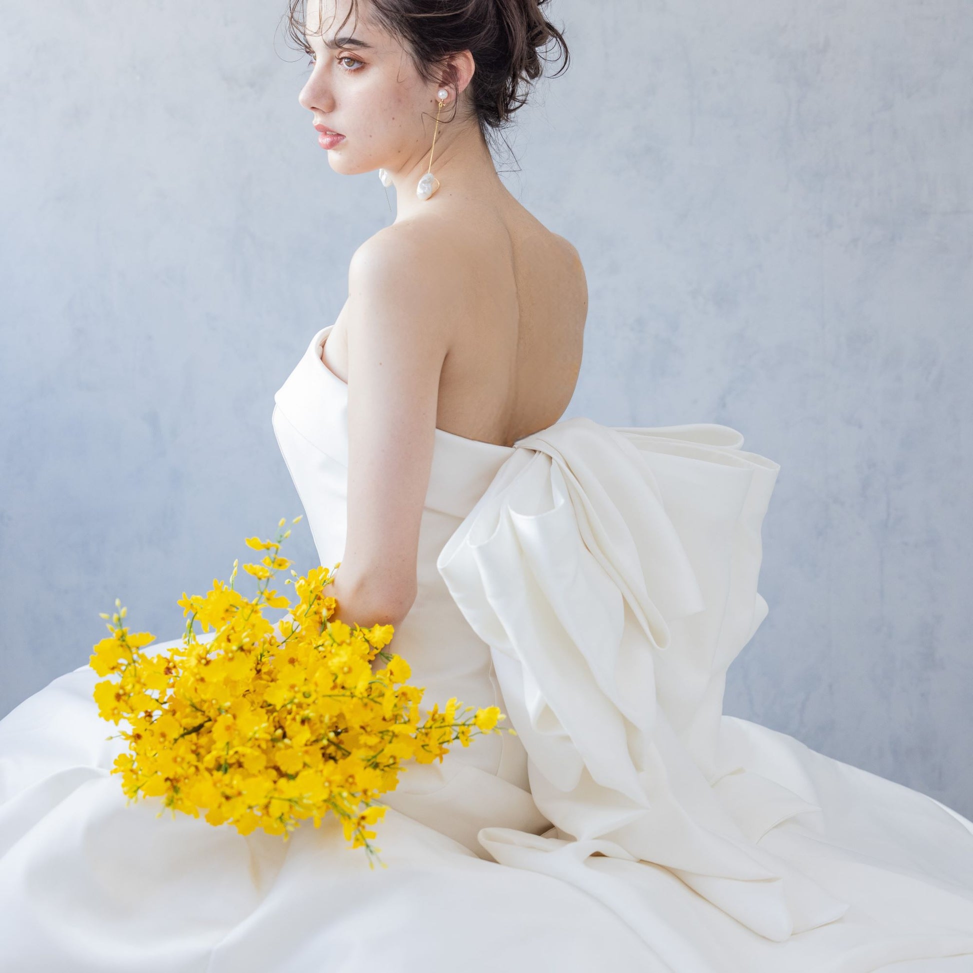 生地にはミカドサテンを採用しており、上品になりすぎないようあえてマットな質感を残し、リゾートらしい抜け感を持ち合わせた印象に仕上げました